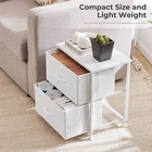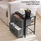 · Versatile and compact design: This nightstand small dresser is perfect for small spaces such as closets, entryways, college dorms, or kids' bedrooms. The 2 fabric drawers provide ample storage space for essentials such as clothing, accessories, or bedtime essentials. · Sturdy and durable construction: Made with a sturdy metal frame and fabric drawers, this side bedroom end table is built to last. It can hold up to 20 lbs in weight, making it ideal for storing books, electronics, or other items. · Easy to assemble: The nightstand small dresser comes with easy-to-follow instructions and can be assembled in minutes with no tools required. The fabric drawers are also easy to remove and clean, making this storage furniture a practical and low-maintenance option. · Stylish and modern aesthetic: The sleek design of this kids bedside storage furniture adds a touch of elegance to any room. The neutral color of the fabric drawers complements a variety of decor styles, making it a versatile and timeless piece of furniture. · Functional and practical: This 20" tall nightstand provides convenient storage for a variety of items, making it a useful addition to any room. Whether used as a bedside table, entryway organizer, or college dorm essential, this side bedroom end table is sure to meet your storage needs.