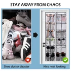 Slim Design: Measures 12.8"W x 70.8"H, designed for tight spaces. The hanging shoe rack for door saves a lot of floor space and keeps everything organized, great for small closet Travel Helper: This lightweight, foldable shoe organizer behind the door is a cruise ship essential. All you need to do is hanging it on the door, and you will get a well organized cabin Mesh Large Pockets: Each pocket measures 6" W x 8.66" H, fit for a size 14 men's shoe or a pair of kids' shoes. Over the door shoe organizer's mesh pockets allow you to see the contents clearly and doesn't leave an odor Easy to Install: The 2 pack hanging shoe holder comes with 4 metal hooks. you can easily hang it in the closet, pantry, bathroom, garage and other places. It's also a great choice for camping, cruising and traveling Multi-Purpose Use: The versatile shoe hanger organizer can not only be used to shoes, but also can be used to organize clothing, toys, toiletries and other items