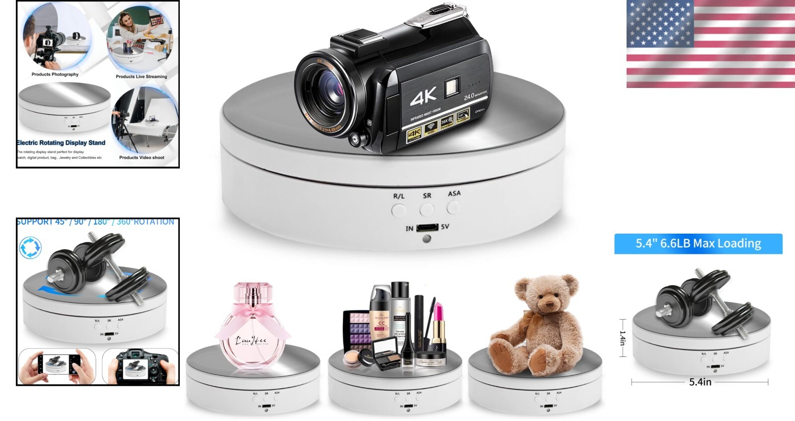 Compact USB-Powered Rotating Display Stand with Adjustable Speed Control - 5.4in < class="slides"> ‹ › ‹ › ‹ › ‹ › ‹ › ‹ › ‹ › ‹ › ‹ › Compact USB-Powered Rotating Display Stand Experience the ultimate in product showcasing with our Compact USB-Powered Rotating Display Stand. This exquisite turntable is designed specifically for professional photographers and enthusiasts alike, elevating the art of product photography and videography. Key Features: Max Load Capacity: 6.6 lbs - Perfectly supports a wide range of products! Versatile Usage: Ideal for displaying items such as watches, electronics, jewelry, collectibles, and even rotating cake displays. Flexible Speed Adjustment: 3-speed settings allow for 10, 15, or 30 seconds per lap, accommodating any shooting style. Multi-Angle Display: Choose from four angles - 45°, 90°, 180°, or ° - to achieve the perfect presentation. Compact Dimensions: With a diameter of 5.4 inches and a height of 1.4 inches, this lightweight stand (0.3kg) is easy to transport. Presents Quietly and Smoothly: The motor operates with minimal noise, ensuring it won’t disrupt your video shoots. User-Friendly Operation: Effortless one-button start for easy ON/OFF functionality and speed adjustments. Durability: Crafted for long-lasting performance, this display stand is both modern in design and robust in function. Why Choose Our Rotating Display Stand? Take your product displays to soaring heights with our Compact USB-Powered Rotating Display Stand! This small yet powerful accessory emphasizes your products' best angles and features while ensuring a smooth and quiet experience. The adjustable speed and angle options let you tailor it to your specific needs, making it the ideal solution for exhibitions, shops, or personal use. Don’t let your products go unnoticed! Invest in this stylish and effective display stand and make a statement that captivates and impresses. Important Consideration: To enhance the longevity of your rotating stand, remember that the battery and USB cable cannot be used simultaneously. Should you have any queries or need assistance, our dedicated customer support team is ready to provide you with solutions within 24 hours. Shipping Free & Fast Shipping - We offer free shipping to most of the USA with a normal delivery time of 3-7 days. However, due to the current situation, additional delivery time (up to 3 weeks) may be required for some items. Alternative Carriers - We may use alternative carriers (e.g. USPS, FedEx, UPS, etc.) to ensure your package arrives safely and on time. Due to the use of multiple carriers, we are unable to provide a tracking number automatically. Handling Time - Orders are processed and shipped within 1-2 business days of receiving cleared payment. Shipping Restrictions - Shipping to Alaska, Hawaii, Puerto Rico, Guam, and other US territories may incur shipping charges or delivery restrictions. Please contact us before ordering, or your order can be refunded/cancelled. State Restrictions - There may be restrictions based on your state of purchase. For example, certain items may not be shipped to California due to state regulations. Contact for Tracking Updates - If you require tracking updates or have any concerns about the delivery of your order, please feel free to contact us, and we will be happy to assist you. Return 30-Day Hassle-Free Returns - We want you to be completely satisfied with your purchase. If you are not, you can return the item within 30 days of receiving it for a full refund or exchange. Easy Return Process - To start a return, simply contact us and we will provide you with a prepaid return shipping label and detailed instructions. Restocking Fee - There are no restocking fees for returns. However, the buyer is responsible for return shipping costs if the return is not due to a seller's error. Refund Processing Time - Refunds will be processed within 5 business days of receiving the returned item in its condition. Payment We accept all major credit cards, PayPal, and Apple Pay for your convenience. Your payment information is secure and encrypted to ensure a safe and seamless transaction. Please complete your payment within 3 days of purchase to avoid any delays in shipping. Feedback Your feedback is extremely important to us. We strive to provide the best products and customer service possible. If you are satisfied with your purchase, please take a moment to leave us a positive review. If you have any concerns or issues with your order, please contact us before leaving negative feedback. We are committed to resolving any problems and ensuring your satisfaction. Contact Us If you have any questions or concerns, please feel free to out to our customer support team. You can contact us through the eBay messaging system. We are available Monday to Friday, 9:00 am to 5:00 pm EST, and we will do our best to respond to your inquiry within 24 hours. Buy it now and enjoy a pleasant shopping experience! Unit Quantity: 1 Suitable For: Display Case,Watch,Digital Product,Shampoo,Glass,Bag,Jewelry,Collectibles,Cake Displays Material: Metal,Plastic Features: Rotating,USB Power Cable,Manual Speed Adjustment,Adjustable Angles,Motorized,Quiet Operation,User Friendly,Lightweight Items Included: Rotating Display Stand,USB Cable,Power Adapter Type: Jewelry Display Color: White Lining Material: Unlined Shape: Round Department: Unisex Adults Capacity: Up to 6.6lb Item Depth: 1.4 in Unit Type: lb