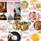 19-in-One Set: This 19pcs cooking utensils and knives set, silicone kitchen utensils set and kitchen accessories to meet your maximum demand be your kitchen assistant. HIGH QUALITY: Superior high carbon stainless steel blades for precision which ensure the blades retain their ultra-sharp edge and accuracy precise for cutting food. 5 PCS KNIVES INCLUDED: Including 8" chef knife, 3.5" paring knife, 8" bread knife, 8" slicing knife, 5" utility knife, knife holder convenient storage of kitchen knives. 11 PIECES SILICONE COOKING UTENSILS: Cooking utensils set is made of highly durable silicone. Including Deep Soup Ladle. Serving Spoon. Slotted Spoon. Slotted Turner. Pasta Server. Flexible Spatula. Basting Brush. Whisk. Tongs. Round Spatula. Turner. MATERIALS :The cooking utensils set is made of highly durable silicone. The cooking utensils can withstand temperatures up to 480℉. Anti-scalding silicone handle protects your hand from burning. Safety non-stick cookware.