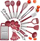 KITCHEN UTENSIL SET: Our utensil sets have everything you need for a perfect cooking experience. Eatex kitchen gadgets and accessories are made of a combination of nylon and stainless steel to ensure no scratching or sticking. COOKING UTENSIL SET INCLUDES: Soup Ladle, Solid Spoon, Slotted Spoon, Solid Turner, Slotted Turner, Potato Pusher, Can Opener, Whisk, Grater, Spatula, Tongs, Ice Scream Scooper, Wine Opener Peeler,Measuring Cups, Measuring Spoons HIGH QUALITY KITCHEN TOOLS DESIGNED TO LAST: No more worries about melting or rusty kitchen utensils. Our high-quality kitchen gadgets are polished with a special oil to prevent it from getting rusty. They are dishwasher safe, light weight and non-stick. Heat resistant is up to 350 F/180℃. GREAT VALUE NYLON AND STAINLESS STEEL UTENSIL SET : Don't spend a fortune buying each utensil individually. Buy yourself a complete kitchen tool set. Our 24 piece high quality set has everything you need included. It is specifically designed to help you with all your food preparations, such as whisking, peeling, cutting, stirring, mixing, basting, baking, grilling, frying and serving up that perfect dish. HOLIDAY GIFT IDEA: Eatex Kitchen Utensils are a great holiday gift idea and come ready to gift. Eatex Kitchen Utensil Set – 24 Piece Nylon & Stainless-Steel Red Cooking Utensils Set, Non-Stick & Heat Resistant Red Utensil Set – Useful Kitchen Gadgets and Tools