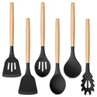 Black Silicone Cooking Kitchen Utensil with Wood Handle Set of 6 are made of food-grade silicone and wood, Without harmful substance leaching into your food, Can bear high temperature up to 446°F/230°C. All pieces utensils are friendly for your non-stick cookware and protect nonstick cookware for long serving time. The kitchen utensils with non-stick surface are easy to clean. The different options you will have with this set and meet your different cooking needs. An economical choice for your family. Specification: Material: Silicone, Wood Quantity: 6 Pcs Color: Black, Wood Tone 6-Piece kitchen utensil kit includes: 1 x Pasta server: 1 x Soup ladle 1 x Slotted turner 1 x Solid turner 1 x Solid spoon 1 x Slotted spoon Craft: Humanized handle, Hang loop, Smooth Features: Non-toxic, Heat-proof, Non-stick, Non-scratch, Easy clean and storage Why Choose Our Black Silicone Kitchen Cooking Utensil with Wood Handle Set of 6? 1. Silicone kitchen utensils’ head are made of food-grade silicone, can bear high temperature up to 446°F/230°C. 2. Smooth and soft silicone head won’t scratch the nonstick cookware. 3. The silicone cooking utensils includes 6 different utensils for many kinds of functions. 4. Ergonomic soft-grip handle with non-slip design can help you cooking better. 5. Small loop is convenient to hang on the wall, Easy to take and save space. Using Instruction: 1. Please wash the utensils before the first use. 2. Please soak them in warm water, wash by mild soap and hand dry after cleaning, store them in the dry place. 3. Please do not scratch the surface with wire balls or sharp tools. 4. Please do not expose to open flames. FOOD GRADE MATERIAL: The kitchen utensils set is made of healthy food grade silicone and wood without harmful substances, No odd smell or leave any other material taste and would not affect the taste of your foods, You can mix and stir it directly into the cookware, Safe and healthy for daily cooking use HEAT-PROOF & NON-SCRATCH: The silicone cooking utensils withstand high temperatures up to 446°F/230°C, Not easy to melt or burn when directly in the high temp, A good alternative choice sturdier than plastic and rubber utensils, Silicone head is scratch-proof and protects your non-stick pans, Extend the lifespan of your kitchen cookware THOUGHTFUL DESIGNS: The soft silicone head bond with wooden handle design makes the utensil firm and not easily breaking off or falling apart, Smooth wooden handles gives you a comfortable grip, Won’t hurt your hands, Modern black and natural wood tone combination decorates your kitchen MULTIFUNCTIONAL KITCHEN TOOLS: Silicone cooking utensil set includes 6 different kitchen utensils set meet many kinds of your cooking needs, Includes slotted and solid turner, deep soup ladle, solid serving spoon, slotted spoon, pasta server, For cooking, turning, serving, mixing, and more, Great tools for kitchen daily use EASY TO CLEAN & EASY STORAGE: The cooking utensil with non-stick surface, Easy to clean up by hand, Every end of the silicone utensil has a hanging loop helps effortless hanging on the hooks, Also ideal for storing in the utensils holder or kitchen drawer, Won’t take up a lot of space