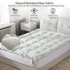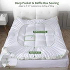 * EXCEPTIONAL LOFT. With extra thick premium fluffy loft, this hotel quality bed topper will transform your mattress from ordinary to unparalleled comfort and supreme softness - while maintaining outstanding support and cushioning. Enjoy the benefits of a pillow topper that isn’t too hot and intuitively adjusts to your optimum body temperature. It’s safe and suitable for use across all ages. * COOL & BREATHABLE. Encased in 40% of the smoothest, silky soft breathable viscose made from bamboo fabric surface features good ventilation and distributes heat to help regulate temperature, will keep you from feeling hot and sweaty. Our extra thick bed topper is designed to deliver excellent ventilation and evenly distributes heat to prevent you from feeling hot and sweaty. Our pillow top is generously filled with 1200gsm of premium hollow fibre for the ultimate in plush comfort. *ELASTIC DEEP POCKET FITTED SKIRT. Our elasticated deep pocket skirt will wrap tightly around your mattress and accommodates depths from 8-21 inches. This clever skirt works exactly like a fitted sheet to ensure your mattress topper will remain securely in place - no matter how much you toss and turn during your sleep! Experience uninterrupted comfort and relax on a fluffy cloud. * IDEAL CHOICE. Our mattress topper aids a restful sleep and is the best choice if you’re prone to any sensitivities. Simply kick back, breathe easy and snuggle down on a layer of plush comfort like no other. * EASY CARE CONVENIENCE. It is not necessary to wash your mattress topper before use as it is clean and sterile. For best results, please tumble dry it on a low heat for at least an hour before use to fluff up the fibres. To extend your bed topper’s life and reduce the need to wash it, position a mattress protector/ fitted sheet over it. Wash bi-annually in a front loader machine on a cool wash. *Please do not use a top loader machine as the agitators destroy the fibres. *