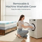 【Cooling Ice Silk Fabric】 On top of our cooling mattress topper king is the 3D NYLON fabric, it’s soft, silky and skin friendly feature can effectively wick moisture and excess heat away from you skin to keep your sleeps dry and comfortable throughout the night. 【Soft Gel Memory Foam】 Conforms to the shape of your body and evenly distributes body weight, our foam mattress topper king can greatly adds comfort to your old mattress. The groove design on the head and the bottom promotes better airflow and enhance breathability 【Double Secure of Fixation】 No more slipping and sliding! Our king mattress topper employs 360°surrounding deep pocket design and inner elastic straps in 4 corners to keep the topper from constant sliding. It fits mattresses ranging from 8” to 16” in height. 【3 in 1 Sleep Experience】 With the removable cover, our bed topper offers 3 distinct use scenario. You can enjoy the whole soft and cool sleep experience. When the cover is too cool for winter, you can take it down and only enjoy the softness from the memory foam. And features deep pocket, the cover can work as a cooling sheet individually 【Effortlessly Maintenance】 Keeping your topper clean can be a breeze, the cooling cover is removable and washable, just following our wash guide then you can easily keep it neat and tidy. 【Certified Product】Rest assured knowing our mattress topper is certified by CertiPUR-US and OEKO-TEX, meeting stringent standard and is reliable for use