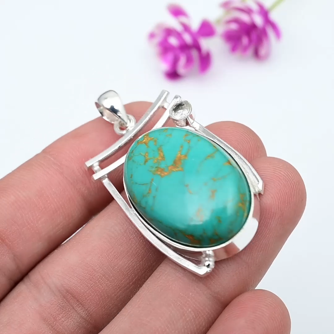 Metal:Sterling SilverNumber of Diamonds:N/AMain Stone Color:BlueCountry of Origin:IndiaCountry/Region of Manufacture:IndiaType:PendantClosure:Same As PicturePendant/Locket Type:Same As PictureMain Stone Shape:OvalMaterial:GemstoneCollection:HandmadeCut Grade:N/ANumber of Gemstones:2Main Stone:Copper TurquoiseStyle:PendantTheme:Beauty, Bohemian, Ethnic, Halloween, Love, NatureMetal Purity:925Diamond Clarity Grade:N/ACertification:N/ANecklace Length:4.5"Setting Style:BezelPendant Shape:Same As PictureChain Type:N/ABase Metal:Sterling SilverOccasion:Anniversary, Birthday, Christening, Christmas, Engagement, Father's Day, Mother's Day, Valentine's Day, WeddingSecondary Stone:White TopazBrand:HandmadeTotal Carat Weight:10 carat and aboveDiamond Color Grade:N/AMain Stone Creation:Lab-CreatedMain Stone Treatment:Not EnhancedColored Diamond Intensity:N/AColor:SilverFeatures:Handmade