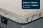 Sleep like you’ve never slept before on this mattress topper from . As part of the family of comfort solutions, this CopperGel memory foam topper can improve any night’s rest on top of virtually any mattress. This enhanced mattress pad combines the conductive aspects of copper with the cooling support of gel to guide heat away from your body, giving any sleeper the comfort and support their back, joints, and muscles need to get the best rest of their life. CopperGel is a trademark of Leggett & Platt, Inc. Enhanced memory foam that combines the conductive properties of copper with the cooling support of gel Copper infused gel beads channel heat away from the body and provide conforming support for a better night's sleep Naturally clean, copper-infused foam helps prevent the growth of microbes to maintain freshness Helps to soothe and stabilize back, joints and muscles while you sleep Made in the USA