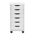 The Corinne Six Drawer Rolling Storage Cart is a versatile storage solution for Office, Kitchen, Bedroom or anywhere where organization is needed. In a white wash finish that will allow this mobile piece to blend into any décor. Six equal size drawers and an ample top can go next to a desk or craft table to put items within easy reach. Soft contoured handle cut out is easy on the touch and creates a clean, modern look. Casters make this piece mobile to go into any room easily. White Wash finish Six equally sized drawers Casters for mobility Smooth, contoured handle cut outs Assembled: 13.39"w x 15.35"d x 25.75"h Made of Solid Elliotis Pine Wood Weight capacity: 110 lbs