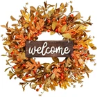 Product specification: Materials: foam and silk Size: Outer diameter: 18’’ Color: Orange Application:front door, wall, indoors,outdoors,window,fireplace,farmhouse, living room, porch, centerpiece party, wedding, holiday and autumn, Thanksgiving, fall festival celebration, etc. Features: This Harvest wreath has a longer compared to the real , the shape and color will stay fresh even a few years later, no need to water or sunlight. This autumn leaves wreath can be used as a gift for front door, wall, indoors,outdoors,window,fireplace,farmhouse, porch, wedding, holiday and autumn, Thanksgiving, fall festival,etc. This handmade fall wreath has special design, made of foam with purely manual process. The appearance of the wreath is very natural, just like the real . Warm Notice: The wreath looks so small, not as described. 1.The wreath may be squeezed during transportation. The size is actually measured after fluffing, they will reach the size as described. Please shape it according to our picture instruction before hanging. What if the leaves fall off? 2. Due to fully hand-made, it is normal if some small item or leaves fall off, it does not affect the overall image of the wreath. You can use the glue and manually stick the flower to the original place. Can it be used outdoors? 3.If used outdoors, please make sure to hang it under the cover to avoid rain and snow. Are the color exactly the same as the picture? 4.All of our picture are actually shoot, we try our best to revert the real color for customer. Due to the shooting light and screen display, slightly color differences may exist. Package Included: 1×Fall wreath in a box 1×Wooden welcome sign [HIGH QUALITY WREATH]: This artificial fall wreath is made of small size pumpkins,autumn leaves,cluster of berries full of rich texture. The entirely realistic wreath is vivid and vibrant. [PROPER SIZE]: 18 inches after fluffing. Since the wreath is packed in a relatively small box to satisfy transportation requirement, you need to expand the branches and adjust the leaves into best shape and you'll get a 18 inch full wreath of enough size. We provide you with 1 double sided sticky hook to help you hang on the door. [VERSATILE DECOR]:This autumn front door wreath is suitable for front door, wall, indoors,outdoors,window,fireplace,farmhouse, living room, porch, centerpiece party, wedding, holiday and autumn, Thanksgiving, fall festival celebration. It will provide your home a strong atmosphere, warm and elegant. [EASY CLEAN]: This Harvest wreath is convenient to clean, just wipe it with a try towel to make the wreath like brand new. The pumpkins and leaves are not easily falling apart. This wreath can be used for a long time. [NOTES]: If used outdoors, please make sure to hang it under the cover to avoid rain and snow. Please don’t hesitate to us if you have any questions, we will try our best to help you!