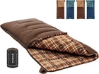 89% Cotton, 11% Polyester Imported 【Cotton Flannel Sleeping Bags】With 210D polyester outer shell, this flannel sleeping bag adopts great durability and water repellency. And it is filled with 400g/㎡ cotton hollow fiber, thermal insulated, and damp proof. Flannel liner gives you a cloud-like skin feeling. Release your fatigue after a tiring day. 【Big and Tall Cold Weather Sleeping Bag】75 L X 33 W. Larger than regular camping sleeping bags. Fits 6 ft tall adults with room to spare. Cozy in any position. Can be used for warm and cold weather in 4 seasons. 【Versatile Zip Together for Double Sleeping Bag】2-way zippers that right or left-hand zippers allow for 2 flannel sleeping bags for camping to be attached together. Unzip the bottom to cool your feet. Besides a sleeping bag, you can "Wear" while chilling, also as a blanket or a picnic pad. for family trips, and car camping. 【Customer-Focused Design for Quality Sleeping Bag】Half-circle hood with an adjustable wind-proof drawstring keeps your head warmer even in extreme conditions. The on the collar prevents the zipper from suddenly opening. 【Easy to Carry】This packable sleeping bag package size is 17 x 9 in, weight 5.07 lbs. The sleeping bag comes with a compression sack, allowing for convenient storage and easy carry, roll control design makes the sleeping bag for adults cold weather folding quickly and easily. The portable sleeping bag is perfect for hiking, backpacking, car camping, and more. On Dec 29, 2024 at 17:46:26 PST, seller added the following information: