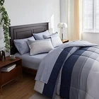 Return Policy Fast Delivery Trusted seller Cotton Striped Comforter Sheet Set Queen Size 7 Pieces Bed in a Bag with Navy White Blue-Gray Stripes Soft Bed Set (1 Comforter 2 Pillow Shams 1 Flat Sheet 1 Fitted Sheet 2 Pillowcases) Product Description Better Cotton Better Sleep: This comforter sheet set is made with 100% Cotton outer fabric. Super soft bed bedding set. Pure Cotton offers the warmth, comfortable breathability and cozy. This kind of fabric is very comfortable and Friendly for most sensitive skin, and can greatly improve your sleeping experience. Nice gift choice for the coming Thanks Giving Day and Christmas WHAT IN THE PACKAGE:7 Pieces Queen Size Bed in a bag including 1 comforter 88”x88”, 2 pillow shams 20”x26”, 1 Queen Fitted Sheet 60" W x 80" L + 12", 1 Queen Flat Sheet 90" W x 102" L, 2 Standard Pillowcases 20" W x 30", The fitted sheet is 12 inch Pocket. Fits mattresses up to 12". Simple Classic Stripes Style: The main color of the comforter is Navy, gray, white, blue stripes with some cube plaid pattern. Great for man women boys teen bedroom. PS: the pillow case was cut randomly, you may get a navy white stripes one or a gray white stripes one. The flat sheet and fitted sheet is light blue design.Very bright for the winter. CUSTOMER SERVICE INCLUDED -- If you have any question about our product, please feel free to contact us on . Uozzi Home will help you in 24h :) Easy Care: Machine washable.No fade, No stain and shrink Dries quick on tumble dry low. Shipping Returns Payment Shipping Shipping is FREE to all addresses other than APO/PO boxes in the lower 48 states. All our stock ships from US-based warehouses. Shipped via USPS or UPS (depending on location and package weight) Unless stated otherwise, all orders will ship within 24-72 hours of your payment being processed. Check our feedback to see the great reviews of FAST shipping we offer. Returns Seller does not accept returns Payment We currently accept payment via eBay managed payments only. Once payment is cleared, we will dispatch your shipment within 1-3 business days. Please refer to the "Shipping" tab for more information regarding shipping speed to your destination.