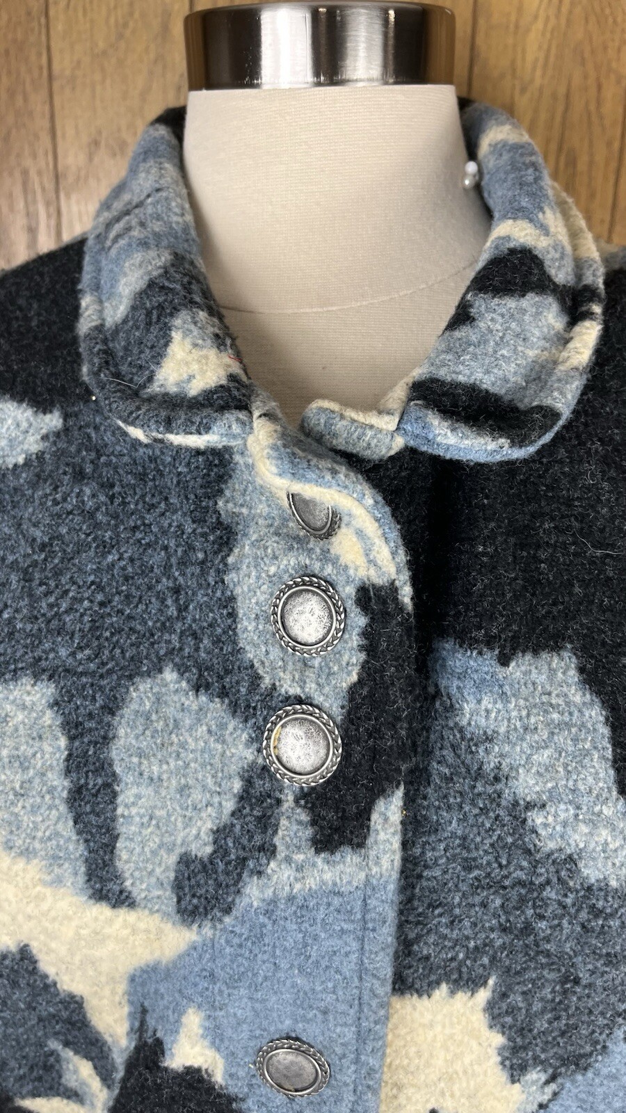 Measurements: armpit to armpit 21”, length 23” in front Add a touch of western style to your wardrobe with this County Clothing Co. vest from the Cheyenne Collection. The sleeveless vest features a unique animal print pattern in shades of blue, perfect for travel, casual outings or workwear. Made from a blend of acrylic and polyester, the vest is machine washable and easy to care for. The vest has a button closure and is a regular fit, with a short length that makes it suitable for layering over long-sleeved shirts or blouses. The garment is accented with buttons and has a western theme, making it a great addition to any wardrobe. Made in Canada, this vest is a must-have for any fashion-forward woman who loves to stand out from the crowd.