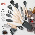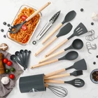 High-Quality Materials Our utensils are crafted from food-grade silicone, ensuring they are safe, non-toxic, and heat-resistant up to 446°F (230°C). The handles are made from natural wood, known for its durability and elegant appearance. Complete Set for All Your Cooking Needs This versatile set includes essential tools such as a spatula, spoon, slotted spoon, ladle, and more, covering all your cooking, baking, and serving tasks. Heat-Resistant and Non-Stick Friendly The silicone heads are gentle on your non-stick cookware, preventing scratches and extending the life of your pots and pans. The heat-resistant material ensures the utensils won't melt or warp, even with high-temperature cooking. Ergonomic Wooden Handles The ergonomically designed wooden handles provide a comfortable grip, reducing fatigue during prolonged use. The natural wood also adds a touch of sophistication to your kitchen decor. Easy to Clean and Maintain The silicone heads are easy to clean, either by hand or in the dishwasher. The wooden handles should be hand-washed and occasionally treated with mineral oil to maintain their beauty and longevity. Eco-Friendly and Safe Our utensils are BPA-free and eco-friendly, making them a safe choice for your family and the environment. The combination of silicone and wood ensures a long-lasting product that reduces the need for frequent replacements. Perfect Gift Idea Whether for a housewarming, wedding, or holiday, our Silicone Kitchen Utensils with Wooden Handles make a thoughtful and practical gift for anyone who loves to cook. Enhance your cooking experience with our durable, stylish, and functional kitchen utensils. Order your set today and enjoy the perfect blend of form and function! ✅ FOOD GRADE SILICONE - Crafted from BPA-free, food-grade silicone, these kitchen essentials are safe for all types of food and are more durable than plastic alternatives. The silicone does not react with food or drinks, ensuring the health of your family while not retaining odors or colors. To remove the initial smell, soak the utensils in water and air them out for about 3 hours before first use. ✅ NON-STICK & EASY TO CLEAN: Our silicone cooking utensils set are non-stick, making them perfect for use with all cookware types, including non-stick pans. Simply toss them in the dishwasher for effortless cleaning! ✅ DURABLE & HEAT-RESISTANT - These silicone cooking utensils can withstand temperatures up to 446°F/230°C. The flexible silicone won’t let food stick, and the heads protect your cookware from scratches and dents, extending the life of your kitchen pans. Unlike plastic or rubber utensils that can melt or metal ones that can damage nonstick surfaces, these are scratch-resistant. ✅ 27-PIECE DURABLE WOODEN HANDLE UTENSIL SET - This set includes 27 professional-grade silicone utensils with wooden handles that are anti-scalding to protect your hands. It features a flexible spatula, soup ladle, serving spoons, pasta server, spatula turner, tongs, measuring cups and spoons, 10 hooks and more. Note: Due to the wooden handles, avoid soaking in water for long periods or using the dishwasher. ✅ BEST KITCHEN TOOLS - Each of the utensils has a unique function and includes small holes on the handles for easy hanging. The set also comes with 10 additional hooks and a utensil holder for convenient storage. This set makes a perfect gift for cooking enthusiasts and is ideal for friends and family. ✅ HOME ACCESSORIES & APARTMENT ESSENTIALS - This silicone cooking utensil set is a must-have for every kitchen, making it one of the top home essentials for cooking enthusiasts in apartments or houses ✅ VERSATILE KITCHEN ACCESSORIES: This comprehensive utensil sets includes essential utensils like spatulas, spoons, and tongs, perfect for a wide range of cooking and baking tasks, from stirring to serving.