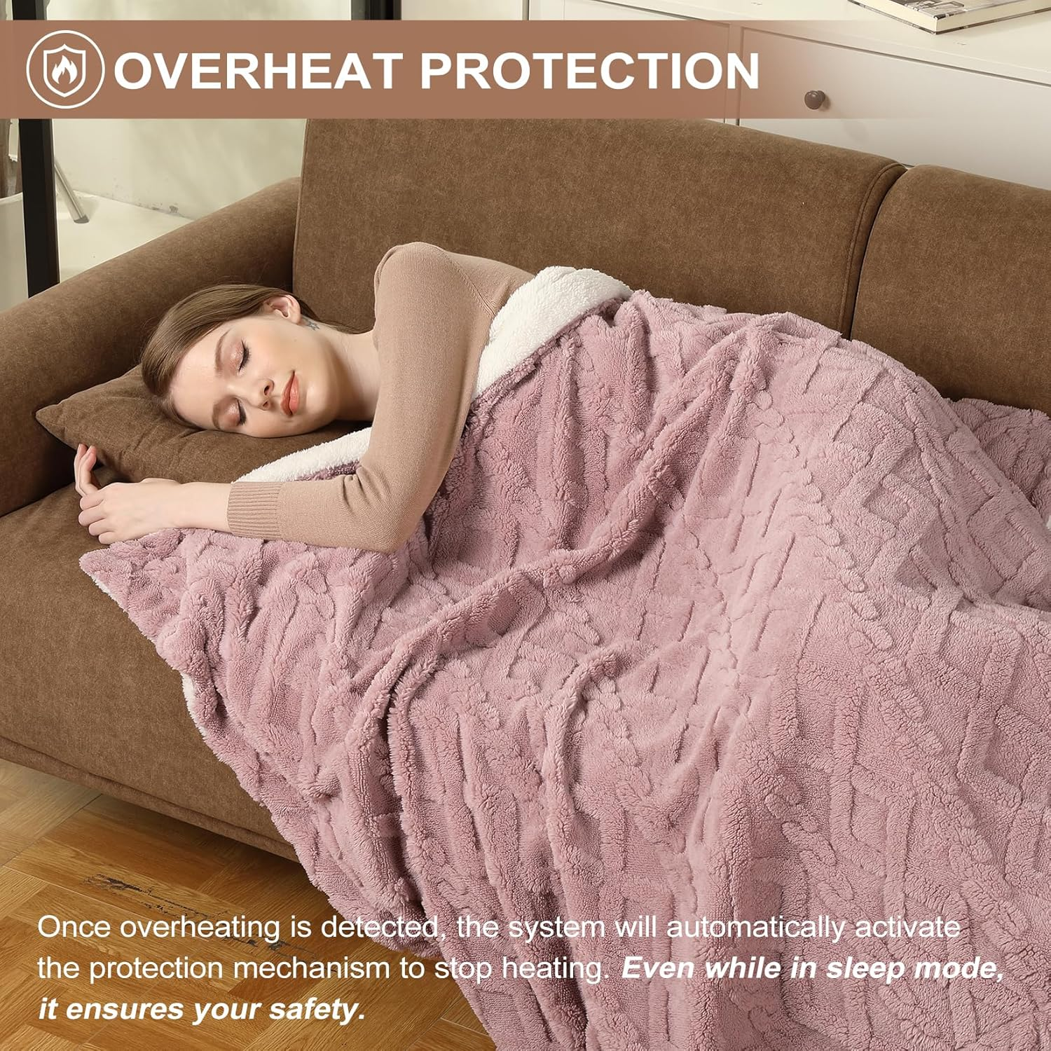 Polyester 【Premium and Stylish】Elevate your comfort and style with our sherpa heated throw blanket. Featuring a tufted cable pattern, it adds a touch of elegance to your home. Crafted with thickened 240GSM jacquard long plush sherpa on one side and 220GSM sherpa on the other, it offers exceptional softness and comfort for a truly cozy experience. 【Enhanced Heating System】Immerse yourself in rapid and consistent warmth with our enhanced heating system. Our upgraded and 10% extended heating wires provide a larger heating area, delivering soothing warmth in just 20 minutes. With 10 heat settings, easily adjust the temperature to your preference. Enjoy a maximum temperature of 122°F, surpassing regular electric blankets by 11°F. 【Safety and Reliability】Your safety is our top priority. Rest assured with our ETL certified electric throw blanket that is equipped with intelligent NTC&PTC heating wires. These wires continuously monitor and regulate the temperature in real-time, ensuring a safe and reliable heating experience as you unwind and relax. 【Energy-saving and Convenient】Enjoy both energy savings and convenience with our thoughtful features. The heated blanket throw automatically shuts off after 8 hours when you first use and offers 1-10 Hours shut-off times for added flexibility. The LCD controller allows easy monitoring and adjustment of the temperature. With a long power cord, you can use it comfortably in various areas of your home. 【Machine Washable】Keeping your electric heated throw blanket clean is effortless. Simply remove the heating controller and machine wash the blanket in cold water on a gentle cycle. After washing, gently stretch the heat blanket back to its original size for optimal performance. Enjoy the convenience of a clean and fresh warming blanket whenever you desire. Product Description 1 Multiple Ways of Use 2 Knee Blanket 3 Bed Blanket 4 Shawl Blanket 5 Heated Throw Blanket