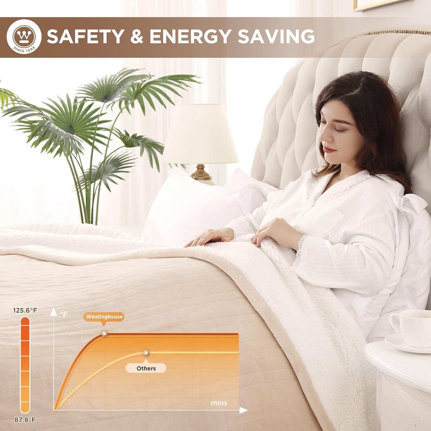 Store New Arrivals Add to Favorite View Feedback Contact Heated Blanket Twin Size, Soft Flannel to Sherpa Electric Blanket with 10 Heating Levels, 1-12 Hours Auto Shut Off, Fast Heating, Machine Washable, 62X84 Inch, Beige Description Item model number WH-HSF62-BEIGE Style Modern Number of Items 1 Pattern Solid Country of Origin China Blanket Form Throw Blanket Theme Plain Unit Count 1.0 Count Batteries required No Product Dimensions 84"L x 62"W Material Sherpa to Flannel Age Range (Description) Adult Seasons Winter Item Weight 5.9 pounds Special Feature 10 heating levels, overheat protection Fabric Warmth Description Heavyweight Color Ivory, Sherpa & Flannel Recommended Uses For Product Camping Sport No Fabric Type Flannel & Sherpa Product Care Instructions Machine Wash Size Twin Size 62*84" Flannel & Sherpa 【PREMIUM MATERIAL】 Westinghouse electric blanket is made of 200GSM flannel and 200GSM white sherpa, which is super soft, comfortable, skin-friendly and breathable, healthy, and can be directly in contact with the skin. The inner heating line is evenly distributed to avoid local overheating, allowing you to use it with peace of mind 【ETL & FCC CERTIFIED】 Westinghouse twin size heated blanket has overheat protection that can be ensured your safety during normal use. ETL and FCC certified heating blanket with low electromagnetic radiation. Please read the instructions carefully before use to avoid local overheating caused by improper use 【INTELLIGENT SINGLE CONTROL & OVERHEATING PROTECTION】 Westinghouse heated blanket supports 20-minute warm-up, help to quickly start the heating process, so you don't have to wait too long to lie under a warm quilt. 12-hour automatic shutdown, overheating protection and other functions, let you use it more confidently. 10 heating settings, the temperature can be adjusted freely 【APPLICATION & SCENES】 Westinghouse electric blanket twin size is great for use while watching television, reading books, relaxing at home on couch or sofa, during work on office, bring you a warm and comfortable life experience 【BEST GIFT SELECTION】 If you have family and friends who are afraid of the cold, this is the best winter gift you can give them . The twin electric blanket is the best gift option as a bed warmer and the best safe choice 【EXCELLENT SATISFACTION AFTER MARKET】 If you have any questions or concerns about the product, please contact our customer service for assistance Product Description ABOUT US We offer the best prices around on high quality products. Our E-store includes media such as books, movies, music and games while offering electronics, toys, sporting apparel, clothing, tools, general home, garden items and more. SHIPPING We are always working hard to ensure your package arrives as soon as possible. Please understand that some factors like weather, high postal traffic, and the performance of shipping companies are outside of our control. We offer free shipping to the lower 48 states and ship within 2 business days of payment, usually sooner. We do not accept P.O. Boxes. Please provide a physical address. For shipping outside of the continental USA, we only use eBay's Global Shipping Program.The item is shipped to KY and then sent to the rest of the world. International customers are responsible for all duties and taxes. Continue to check out in order to calculate costs for shipping the item to your country. Messages regarding eBay's Global Shipping Program MUST be directed at eBay EXCLUSIVELY. RETURNS We offer a 30-Day Return Policy on items which you are not completely satisfied with. You have the option for a full-refund or an exchange of the item. No returns are available on items shipped outside of the USA. PAYMENT We accept PayPal. CONTACT US This page content is yet to come Please ad us to your favorite seller and visit again later Thank You CUSTOMER SATISFACTION We try our very best to make sure every customer is completely satisfied. If there's a problem, message us! We're happy to help.