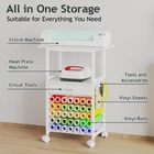 [All-in-One Craft Cart] Keep your workspace tidy with the Craft Cart Organizer Table, featuring a fabric drawer, 6 side hooks, and a bottom vinyl storage rack that holds up to 35 rolls. This multifunctional rolling storage cart is perfect for organizing tools, materials, and accessories in one convenient place. [Versatile Storage Options] With a spacious middle shelf for card stock and supplies, plus side hooks for hanging scissors or craft mats, this cart is designed for diverse needs. Ideal for craft room storage, offering both vertical and horizontal organization. [Compact & Space-Saving] Measuring L23.6" x D11.81" x H29.5", this crafting cabinet workstation tool fits snugly into small spaces while providing ample storage for all your supplies. Maximize your workspace without compromising on functionality. The top shelf is compatible with all Cricut machines, including Cricut Maker, Cricut Maker 3, Cricut Explore Air 2, Cricut Explore 3, Cricut Joy, EasyPress Mini, EasyPress 2, Silhouette Cameo series, and more. [Smooth Rolling with Stability] Equipped with four 360° rotating wheels, including two locking brakes, this craft table is easy to move and stays firmly in place during use. Perfect for multi-room crafting or for flexible positioning in your workspace. [Heavy-Duty Durability] Constructed from premium materials, this crafting cabinet workstation tool supports up to 110 lbs without wobbling, making it suitable for holding a vinyl storage compatible with Cricut or other heavy crafting machines. [User-Friendly Design] The top shelf is spacious enough to hold a craft machine, while the middle and lower shelves provide room for vinyl rolls, card stock, and other supplies. A must-have for crafting enthusiasts who value craft organizers and storage. [Easy Assembly for Convenience] Simplify setup with the included detailed manual, allowing you to assemble the craft room storage cart in minutes. Spend less time building and more time creating! [Creative Workstation for DIY Projects] Designed for hobbyists and professionals alike, this craft table streamlines your crafting workflow, providing easy access to tools and materials. Say goodbye to clutter and hello to creativity. [Sleek & Modern Design] Finished in a clean white color, this cart complements any home décor style. Perfect for enhancing the aesthetics of your craft room storage while providing functional organization. [Perfect for Vinyl Enthusiasts] The built-in vinyl roll organizer accommodates up to 35 rolls, keeping them neat, accessible, and protected from damage. Whether you’re cutting, weeding, or creating, this vinyl storage compatible with Cricut ensures your supplies are always ready to use.