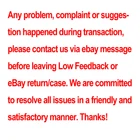 For Craftsman LT1000 LT2000 DLT3000 42" Deck Clutch Cable 532169676 532175067 Description: Fitment: Fits several AYP, Craftsman, Rotary, Poulan, and Husqvarna models with 42" Decks Replaces Part Number: 175067, 169676, 60-525, 10891, 21547184, 21547197, 532193235, 532169676, 532175067, ELV70-0273 Color: Black Cable Length: 45" Conduit Length: 32" Features: Convenient to use, no complicated procedures required, it's a perfect replacement for the old or broken one. Use performance materials to increase durability and provide greater reliability. Built to greatly strict quality control standards for wonderful performance. Note: Please make sure your vehicle model is exactly same as us before purchase. 532175067 5321696-76 175067 169676 Cable Compatible with: For Craftsman 917270750 917271910 917274761 917272673 917272350 917271815 917273764 917272352 917272069 917274390 917271734 917270760 917271050 917270532 917275760 917275810 917289030 917272070 917273470 917271652 917271643 917273180 917272442 917271061 917276827 917289031 917288032 917273821 917272912 917276813 917271821 917250840 917279840 917279841 917279900 917279901 917279910 917279911 917279920 917279921 917279940 917279950 917279960 917279961 and more. Package Included: 1 x Deck Clutch Cable (as picture shown) Description: Fitment: Fits several AYP, Craftsman, Rotary, Poulan, and Husqvarna models with 42" Decks Replaces Part Number: 175067, 169676, 60-525, 10891, 21547184, 21547197, 532193235, 532169676, 532175067, ELV70-0273 Color: Black Cable Length: 45" Conduit Length: 32" Features: Convenient to use, no complicated procedures required, it's a perfect replacement for the old or broken one. Use performance materials to increase durability and provide greater reliability. Built to greatly strict quality control standards for wonderful performance. Note: Please make sure your vehicle model is exactly same as us before purchase. 532175067 5321696-76 175067 169676 Cable Compatible with: For Craftsman 917270750 917271910 917274761 917272673 917272350 917271815 917273764 917272352 917272069 917274390 917271734 917270760 917271050 917270532 917275760 917275810 917289030 917272070 917273470 917271652 917271643 917273180 917272442 917271061 917276827 917289031 917288032 917273821 917272912 917276813 917271821 917250840 917279840 917279841 917279900 917279901 917279910 917279911 917279920 917279921 917279940 917279950 917279960 917279961 and more. Package Included: 1 x Deck Clutch Cable (as picture shown) PAYMENT We accept the payment through PayPal,Visa, Master Card, Payoneer, Credit Card. SHIPPING All USA orders get shipped within 1 business day from our CA warehouse directly. Please provide an valid and correct shipping address. And Saturday and Sunday orders will be shipped on next Monday. Terms of Sale 1. We aim to provide you with the best online shopping experience. If incorrect or defective item when you receive it, plz contact us via eBay message before you return the item back. We promise no extra charges, we will pay return shipping fee and arrange replacement or FULL REFUND ASAP. 2. If buyer want to return the product without any problem, buyer should pay return shipping fee. The item must be returned in good condition and its original packaging and accessories, never installed or mounted. We will not accept returns after 30 days of delivery date. ABOUT US 1. Any problem, complaint or suggestion happened during transaction, please contact us before leaving Low Feedback or eBay return/case. We are committed to resolve all issues in a friendly and satisfactory manner. 2. We will solve your problem during working time (except weekends and public holidays). If you do not get a response from us, then please check your junk or spam mailbox. Thank you in advance! On Nov 15, 2024 at 00:54:29 PST, seller added the following information: