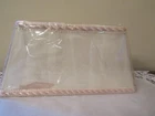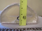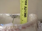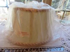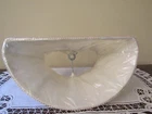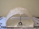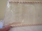 1 ::: Cream White Cloth Semi- Shape Fabric Lined Lamp Shade with Braided Trim on top rim and bottom rim. Semi - for flush to wall. Unopened and unused but Distressed with splotch of color on back of the Lamp Shade. See last picture. Should not show in use. 5"H x 3-1/2" x 7" approx.