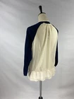 NWT Cremieux mixed media cardigan sweater in navy knit & cream chiffon V-neck, long sleeve, buttons at waist, sheer back with ruffle hem Fabric Content - Knit: 100% cotton, Chiffon: 100% polyester Care Instructions - Hand wash, flat dry See photos for condition - this is brand new with tags still attached, no flaws Size Large - See photos for measurements