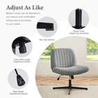 Menu Other Items Feedbacks About Us Contact Us Add To Favorites Criss Cross Chair Legged, Armless Office Wide Desk Chair No Wheels, Swivel Vanity Height Adjustable Fabric Modern Computer Task Seating for Home - Grey 【Adjustable Comfort】The seat of armless desk chair can be rotated 360°. After turning the knob under the seat cushion, the seat can be swung back at 21°.This wide office chair is perfect for home office, living room, bedroom, powder room, study etc. 【Seat size】The armless chair size 25.79"x25.98"x35",Seat height can be adjusted to 31.1-35 inches according to preference. Weight 27.56lbs. The U-shaped seat design and huggable backrest structure reduce pressure on the hips. 【Load Bearing】This office chair metal leg design, supports up to 300lbs.Wheel-less construction of this armless office chair also gives it a stable frame with a balanced center of gravity and it’s not easy to slip. 【Stylish Elegant】This chair Seat cushion and backrest filled with high-density sponge, combined with ergonomic structure, will bring you a more comfortable sitting feeling and are not easy to deform. 【Easy Assembly】This desk chair with no wheels can be easily installed according to our provided installation video. Great cross-legged chair for home and office. Product Description 1 Living Room 2 Bedroom 3 Powder Room 4 Study Compare with similar items Add to Cart Add to Cart Add to Cart Customer Reviews 4.5 out of 5 stars 1,513 4.5 out of 5 stars 1,513 4.5 out of 5 stars 1,513 4.5 out of 5 stars 1,513 4.5 out of 5 stars 1,513 4.5 out of 5 stars 1,513 4.5 out of 5 stars 1,513 Price $68.47 $ 68 . 47 — $49.99 $ 49 . 99 — — — $75.99 $ 75 . 99 Brand Sweetcrispy Sweetcrispy Sweetcrispy Sweetcrispy Sweetcrispy Sweetcrispy Sweetcrispy Color Grey Beige Blue Pink White Black Brown Size 25.79"D x 25.98"W x 31.1"H 25.79"D x 25.98"W x 31.1"H 25.79"D x 25.98"W x 31.1"H 25.79"D x 25.98"W x 31.1"H 25.79"D x 25.98"W x 31.1"H 25.79"D x 25.98"W x 31.1"H 25.79"D x 25.98"W x 31.1"H Weight 27.56 Pounds 27.56 Pounds 27.56 Pounds 27.56 Pounds 27.56 Pounds 27.56 Pounds 27.56 Pounds Style Classic Classic Classic Classic Classic Classic Classic Is the cushion of the chair firm or soft? The cushion of this armless office chair strikes a perfect balance between firmness and softness. It is crafted with high-quality sponge cushion that offers optimal resilience, ensuring both comfort and support in your seating experience. Is assembly easy for this office chair? Absolutely! The installation process for this office chair is straightforward and hassle-free. With just 6 simple steps outlined in the provided installation manual or video, you can have the chair fully assembled in under 10 minutes. What is the seat depth of this home office chair? The seat depth of this small-size home office computer desk chair is set at 17.51 inches. It provides sufficient space and support for the average user. What is the weight capacity of this chair? Rest assured, this small office chair has a robust maximum weight capacity of 250 pounds. Crafted with high-quality metal, it ensures both durability and safety. Can you provide the lowest height from the floor to the top of the cushion for this chair? Certainly! The lowest position of this height-adjustable office chair measures at a comfortable height of 17.71 inches from the floor to the top of the cushion, making it suitable for various desk types. Item Specification Item model number AS1W61GR Style Classic Cushion Style Contoured Assembly required Yes Pattern Solid Age Range (Description) Adult Country of Origin China Room Type Office, Kids Room, Bedroom Is Customizable No Batteries required No Tilting No Maximum Weight Recommendation 3E+2 Pounds Model Name Criss Cross Chair Legged Arm Style Armless Leg Style Cross Leg Form Factor Four-legged, U-shaped seat, Armless Included Components Office Chairs, Assemble Tool, Instructions Indoor/Outdoor Usage Indoor Back Style Solid Back Item Weight 27.6 pounds Fill Material Foam Surface Recommendation Hard Floor Is Foldable No Special Feature Adjustable Height, Ergonomic, No Wheels Furniture base movement Swivel Reclining Position Count 1 Color Fabric Grey Furniture Finish Grey Frame Material Metal Seat Material Type Foam Shape L-Shape Recommended Uses For Product Office, Reading, Gaming Material Textile Item Weight 27.6 Pounds Refill Foam Product Dimensions 25.6"D x 25.98"W x 30.71"H Size 25.6"x 26"x31" Dimensions Shipping Returns Additional Info Product Dimensions: 25.98 "h x 25.6 "h x 30.71 "h. Weight: 27.6 lb Fast shipping is very important for us. Our standard shipping service is FREE. Your order will be shipped within 1-3 business days upon full payment received. Most items are delivered within 3-5 business days, however, please allow 3-10 business days. We are shipping only to USA. We only ship to the confirmed Paypal address. We reserve the right to cancel any order for any reason at any time. We are not responsible for undeliverable addresses. We offer a 30 day return policy from checkout winning date. Your satisfaction is guaranteed! If for any reason you are unhappy with your item, just return it within 30 days for a full refund, minus shipping cost. Please contact us prior to initiating a return so that we can issue you a refund authorization. Items defective upon receipt must be packaged in their retail packaging as if new and returned with a detailed description of the problem. Return shipping fees are not refundable. We reserve the right to decline any returns if the above guidelines are not followed. All of our items, unless otherwise stated, will only run on 120 volts. Please check to make sure your country complies with these specifications. If you have a problem or question regarding your transaction please contact us before leaving any type of feedback. We will work with you to resolve any problem you may have.