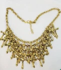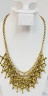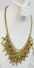 Cross with Skull Dangle Charm Chain Bib Necklace Halloween Jewelry GOLD tone