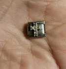 Crystal cross Italian Charm. 9mm. Crafted from stainless steel. The charms feature a rectangular shape with a link closure, making them easy to add to your bracelet.
