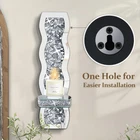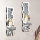 【Elegant and Gorgeous】The mirrored candle holder stands out with its unique diamond-inlaid design. The diamonds beneath the mirror shimmer and sparkle as light hits them, blending modernity with luxury to add an unusual touch of color to your home decor. 【Home Decor】The elegant wall candle sconces can serve as an accent for your living room, dining room, or bedroom, blending with various home decor styles to elevate the taste and level of your entire space. 【Easy to Install】The back of the candle sconce has only one mounting hole, punch the screws on the wall and lightly snap on the screws to finish the installation. 【Size & Materials】The wall candle holder measures 15*4*3.5in.The candle sconces are made of high quality silver-tone mirror and decorated with luxurious crushed diamonds. The back of the wall-mounted design is made of MDF. 【Packaging】Packaged securely. Two packs of candle holders in the same box with thick foam for protection.
