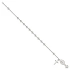 4mm Sterling Silver Polished Rosary Bracelet - 7.5 Inch - 4.0 Grams in Sterling Silver - Charm/Element Width: 8.4 mm - Width of Item: 4 mm - Charm/Element Length: 17.6 mm - Length of Item: 7.5 in - Chain Length: 7.5 in - Chain Width: 1.58 mm - Clasp /Connector: Spring Ring - Finish: Polished - Chain Type: Cable - Feature: Semi-Solid - Clasp Width (Male end): 5.69 mm - Clasp Width (Female end): 2.7 mm - All of our jewelry for women and men are authenticated with a 10K or 14K hallmark and are tested to pass FTC regulations. Free Shipping Over $49.99* Details Curata 925 Sterling Silver 7.5" Polished Rosary Dangle Cross Bracelet Product Description: 4mm Sterling Silver Polished Rosary Bracelet - 7.5 Inch - 4.0 Grams in Sterling Silver - Charm/Element Width8.4 mm - Width of Item4 mm - Charm/Element Length17.6 mm - Length of Item7.5 in - Chain Length7.5 in - Chain Width1.58 mm - Clasp /ConnectorSpring Ring - FinishPolished - Chain TypeCable - FeatureSemi-Solid - Clasp Width (Male end)5.69 mm - Clasp Width (Female end)2.7 mm - All of our jewelry for women and men are authenticated with a 10K or 14K hallmark and are tested to pass FTC regulations.