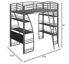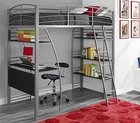 With space becoming such an essential commodity, it pays to think vertical! The DHP Studio Loft Bed allows you to maximize your living space by taking advantage of vertical space! The DHP Studio Loft bed is cleverly designed to accommodate a twin mattress and a built-in desk with four shelves to store your books, laptop, picture frames, etc. This space saving solution with pleasing aesthetics is constructed of strong metal frame in a silver finish, multiple metal slats and safety rails. The DHP Studio Loft Bed makes it possible to afford an attractive workstation with storage without compromising on design. A winning combination! Space-saving functionality Silver metal finish Built-in study area with multiples shelves on each side for storage Ladder on the front Safety rails and multiple metal slats for safety, support and durability