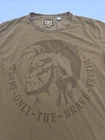 This vintage Diesel Y2K t-shirt is a must-have for any fashion-savvy man. Made in India, this shirt features a unique graphic print that showcases the brand's iconic logo. With a crew neckline and short sleeves, this shirt is perfect for any casual occasion. The shirt is made of high-quality cotton material and is machine washable for easy care. The brown color of this shirt makes it a versatile addition to any wardrobe. The shirt is available in XL size and has a regular fit. This t-shirt is perfect for men who want to show off their love for designer, Italian, USA, marine, university, holiday, music, London, outdoor, city, classic, and Paris themes. The shirt is suitable for all seasons and is padded with breathable material, making it comfortable to wear in winter, summer, fall, and spring. Check Pictures for flaws and measurements