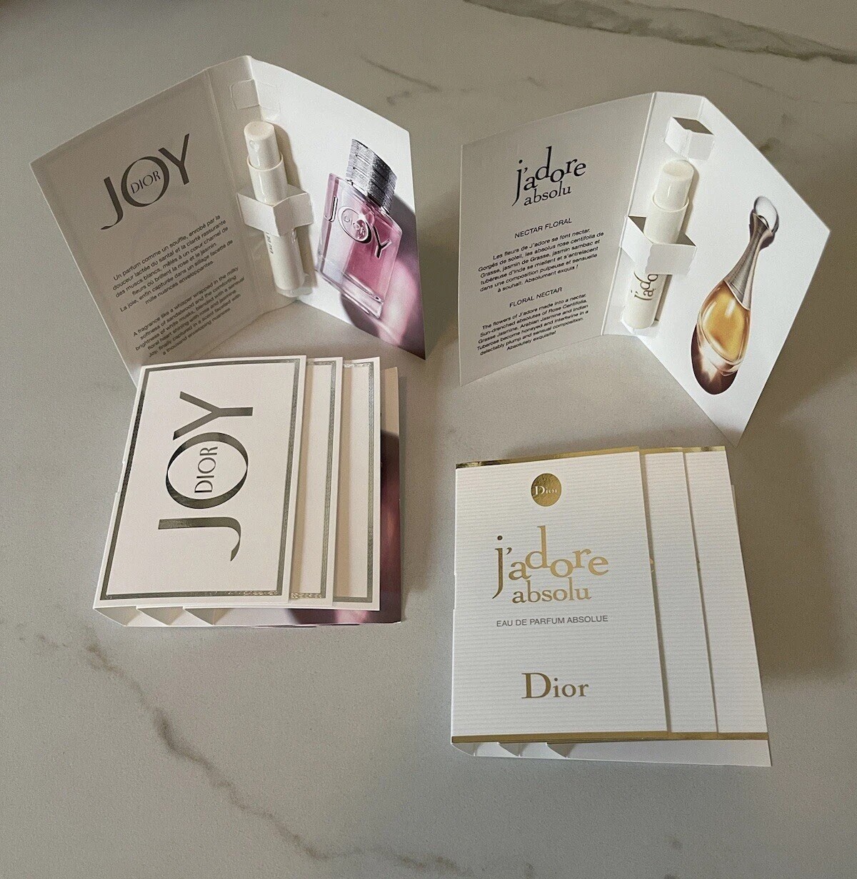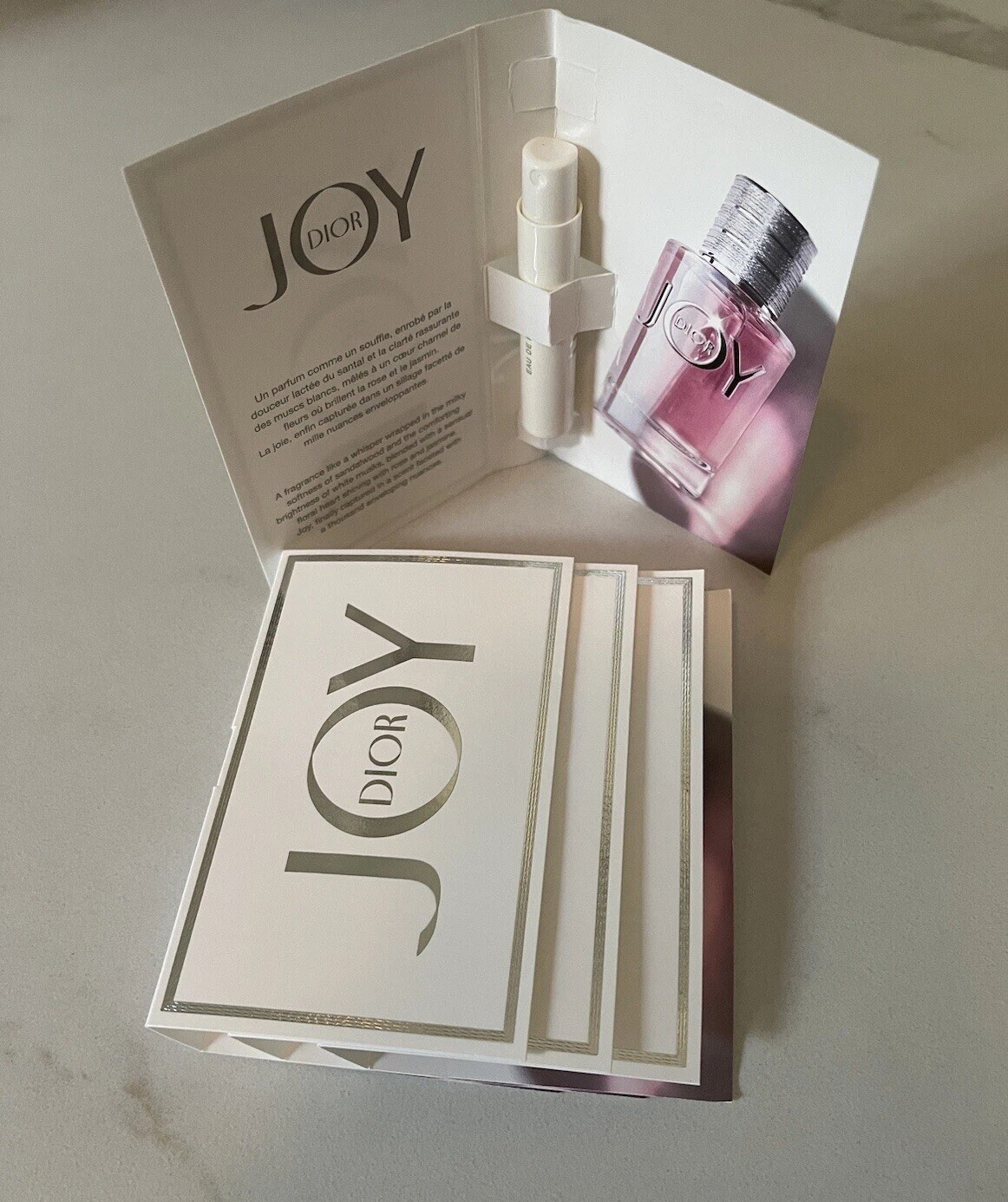 DIOR _ J'adore Eau de Parfum Fragrance Family: Floral Scent Type: Warm Florals Key Notes: Ylang Ylang, Damascus Rose, Jasmine Sample 4 Pc Size;1ml -0.03fl.Oz -DIOR JOY by Dior Eau de Parfum A fragrance like a whisper wrapped in the milky softness of sandalwood and the comforting brightness of white musks, blended with a sensual floral heart shining with rose and jasmine. Joy, finally captured in a scent faceted with a thousand enveloping nuances. Sample 4Pc Size( 1ml -0.03fl.Oz