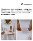 Create Your Own Scented Candle: DIY Candle Kit with Natural Soy Wax, Grapefruit, Apricot & Freshness Citrus aroma with notes of grapefruit and ripe apricot. DIY candle making kit. Natural soy wax candles. Grapefruit scented candle. Apricot candle. Fresh scented candle. Handmade candles kit Family: tree Notes: ripe figs, patchouli flowers, nutmeg Sweetness: ★★☆ Astringency: ★★☆ Freshness: ★★☆ Composition of the set 300 grams (10.5 ounces) of natural soy wax Cotton wick Centering rod Naturally DIY candle kit 300 grams (10.5 ounces) of natural, ecological soy-based wax with safe aromas and essential oils. Without parabens, paraffin and phthalates. A true perfume Perfumed aroma filling made in France. Smells like the best candle you could find anywhere. No apples and strawberries from China. Ecologically 100% recyclable packaging. The candle does not leave behind anything that can harm nature. Use and safety techniques Burning time is approximately 60 hours Cut the wick to a length of 0.5 cm (0,19 inch) before each smoking Never leave a lit candle unattended Avoid drafts and contact of the candle with flammable materials Keep away from small children and pets The recommended burning time is not less than 1 hour and not more than 4 hours in a row Soy wax We use exactly 100% soy wax. This wax is clean and safe for your health. It also provides the best aroma output and long-lasting burning. High-quality aroma oils The candles you make will not differ in aroma from the highest quality candles on the market. In addition, aroma oils are certified and do not contain parabens, phthalates and other harmful chemicals. Made in Ukraine Each set is made by hand in Kyiv with pride and care. Create comfort with your own hands You will be amazed by the quality of the candles that you will get, because we have developed a very high-quality mixture of soy wax and natural aroma oil on a par with premium candles of the highest quality. DIY Candle is a candle refill . Inside the package, you'll find everything you need to create a candle: pre-scented soy wax , a wick, and a stick to center the wick in your future candle. To make your own candle, you only need our kit, a container, a microwave or a pot of water, and 5 minutes Make candles as easy as one, two, three... Heat the bag in the microwave for 2.5 minutes. Pour the melted wax into your favorite container. Let the wax harden, trim the wick, and enjoy the fresh scent. How to choose a capacity: They fit Glazed ceramics Strong glass Soldered metal cans Enamel products Non-flammable glasses Do not fit Porous ceramics. For example, terracotta Wood, coconut shells, plastic All flammable materials Can't hold water Dimensions DIY candle kit We recommend using containers no larger than 10 cm (5.39 inches) in diameter, because this is how the wick is calculated. The set includes a 12 cm (6.47 inch) long wick, so the capacity should not be higher than 11.5 cm (6.20 inch) Frequently asked questions (FAQ) DIY candle kit Where can I find a wick and a wick holder? Everything in the package! Yes, everything goes together and in order to make a candle you don't need anything except the DIY Candle package How should I choose a glass? It must be a leak-proof glass with a diameter of up to (10 cm 5.39 inch). Can I make a candle without a microwave? Yes, you can put the DIY Candle package in a pot of water. The package should stand upright over medium heat until the wax in it is completely melted. It takes different time from 8 to 15 minutes depending on your stove and pot. How many candles can be made from one set? Contains 300 grams (10.5 ounces) of wax. This is definitely enough for almost any candle you can find at home. But there is only 1 wick in the set, so if you have wax left after you make a candle, you can order more wicks and make more!