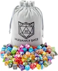 DND Dice Set (140 Pieces), Huuancy Polyhedral Dice for Dungeons and Dragons DND RPG MTG Table Games with 1 Large Flannel Bag, 20 Colors Product Details Package Dimensions: 8.62 x 5.83 x 2.87 inches Item Weight: 1.3 pounds Manufacturer recommended age: 14 years and up Manufacturer: Huuancy 【20 COLORS】: Each group of DND dice contains 1 d4 dice, 1 d6 dice, 1 d8 dice, 2 x d10 (0-9 and 00-90) dices, 1 x d12 dice, 1 x d20 dice. There are 140 in total.Comes with a big dice bag. 【DICE MATERIAL】:The polyhedral game dice are made of acrylic, resistant to oxidation, easy to roll and durable, bringing you a better gaming experience. 【EASY TO READ】:All the numbers are engraved on the Dice, Never fade easily. All acrylic dices have clear figures on each side. And the clear figures are as large as possible on each face for easy reading. 【GOOD BALANCE】: These rpg dice are scientifically designed and manufactured using precise molds. They are well balanced to ensure that each dice in the game can roll correctly. 【Tips】:If you receive any missing or damaged dice, please contact us for Replacement or Refund. Huuancy 20 x 7 Polyhedral Dice sets are Great for D&D role palying games, DND,MTG,Yugioh,card or table games, board games, miniature and dice gaming,family and party games, education and school supplies. Features: 1.Sets of 7-die set,contains: d4,d6,d8,2 x d10 (0-9 and 00-90),d12 and d20 - the percentage dice. 2.No visual trouble,dice numbers on each face are as large as possible for easy reading,use underscoring to differentiate 6 and 9. 3.The polyhedral game dice are made of acrylic, resistant to oxidation, easy to roll and durable. 4. High quality: guarantee the quality in all aspects of the balance, color, material, printing, touch and packaging of the dice. 5.Comes with a beautiful velvet cloth bag, easy to store and take out. pocket size: 9.4X6.3 inches. Package includes: 140 x polyhedral dice 1 x gray drawstring flannel bag Product Warranty: If you receive defective dies or missing dies set, please CONTACT US for replacement or Refund. Warm notice: Small parts, please keep them away from children. Adult supervision is required.