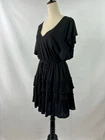 Daily Practice Anthropologie Dress Black Small New Tiered Ruffled Flutter Sleeve Low Back Crinkled fabric ruffles mixed with knit cotton Fabric Content - Woven: 100% cotton, Knitted: 59% cotton, 41% modal Care Instructions - Machine wash, flat dry See photos for condition - brand new, tags still attached Size Small - See photos for measurements G3