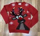 Daisy’s Boutique pom pom nosed Reindeer Christmas sweater. Women’s size medium. Back says “Oh Deer”. Preowned. Good condition.