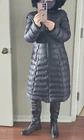 Embrace the chill with this Dawn Levy long down puffer coat, designed to keep you cozy and stylish. A quintessential piece for the fashion-forward woman, this coat features a luxurious down insulation, ensuring warmth and comfort during the colder months. The sleek black polyester outer shell offers durability and a timeless look, making it a versatile addition to any wardrobe.Tailored to fit a regular size small, the coat's long length provides ample coverage and a quilted style that adds a touch of elegance. Whether you're out on a brisk evening stroll or running errands, this coat will shield you from the elements while enhancing your outfit with its classic design.