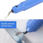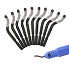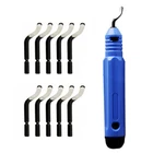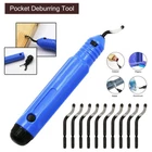 Deburring Tool Metal Kit for Wood Copper Steel 11pcs Rotary Deburr Blades Set Features: The blades are made of tempered high-speed steel, which makes the edge sharpness and blade extremely durable. The burr handle is hollow which allows you store spare blades. If you want to store blades, just press the button at the end, and twist the cover, then you can take it off. 10 pieces blades are available there in the package for this rotary deburring tool. Simply pressing the button on the deburring cutter to replace the blade, can be installed. This metal reamer can be used as a machinist tool,from home use DIY projects to professional industrial applications, works on metal, steel, copper, aluminum, plastic, tin, trunking, etc. Package Includes: 1 * Hole Deburring Tool 10Pcs Blades