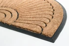 Welcome your guests with this attractive rubber back coir doormat from Decor. Constructed of 100-percent brush coir and molded with vulcanized rubber in a half-round sunrise design. Coir is the natural fibre extracted from the husk of coconuts and is relatively waterproof, has superior scrubbing power and is resistant to the elements. Coir combined with rubber reveals a doormat that is not only stylish and elegant but will also stay in place and not skid. Item #705RBCM-L 100-percent brush coir Vulcanized rubber prevents skidding Molded into a variety of attractive designs Ideal for heavy-use traffic areas Measures 24-inch by 36-inch