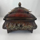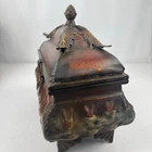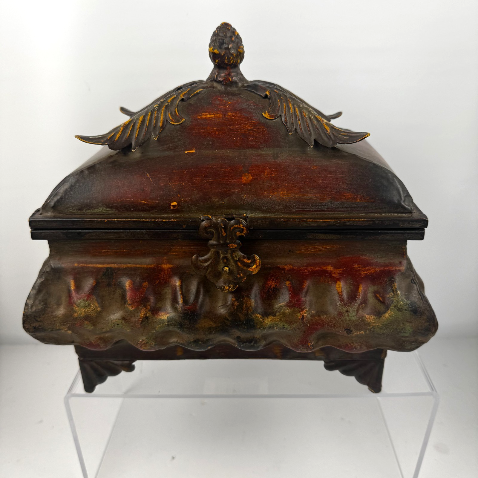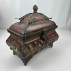 Decorative Metal Hinged Trinket Box Jewelry Storage Keepsake. Pre-owned item in good condition, has some wear as you'd expect from a used item. N oticed some slight imperfections due to use and age. Great home decor. Please use the zoom feature to determine shape and condition, check all pictures and measurements carefully for detailed viewing as they are part of the description and help you with your purchase. I invite you to always check my new listings, buy with confidence. Smoke free home. Thank you, have a wonderful day!! MTL - 5