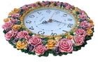 About this item ELEGANT DESIGN: Beautiful wall clock featuring a decorative frame adorned with detailed pink, orange, and purple roses, perfect for adding a romantic touch to any room PRECISE TIMEKEEPING: Reliable quartz movement ensures accurate time display with clear, easy-to-read numbers on a white dial face FLORAL FRAME: Intricately crafted rose arrangement with green leaves and small white flowers creates a stunning circular border around the clock face VERSATILE DECOR: Round wall clock design complements various interior styles, from vintage to modern, making it ideal for living rooms, bedrooms, or dining areas DIMENSIONS: Clock face measures approximately 12 inches in diameter with raised floral frame extending beyond the central timepiece