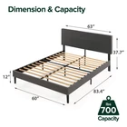 Brand Unbranded Item Length 64.56 Item Width 20.87 Item Height 4.33 Color Gray Frame Material Upholstered Type BED FRAME Compatible Mattress Size As described Diamond-ring-1 Simple life Denna Upholstered Standard Bed Dark Grey W/Slats, Queen Minimalist style for any bedroom - with a sleek upholstered silhouette and the durability of a solid steel frame, the cambril platform bed is just what you need to hit refresh on your bedroom without paying an extravagant price Durable construction - crafted with a dependable steel frame with center support legs designed for long-lasting, noise-free use; all sizes can support up to 700 lbs. Box spring required - steel support beams are designed for use with a box spring and mattress set Easy assembly in under 1 hour - everything you need for setup is efficiently packed into one box and shipped straight to your door; all parts, tools and instructions are included for easy, two-person assembly in under an hour Polyester upholstery, HD foam, and durable steel Item Specifics Brand Unbranded Item Length 64.56 Item Width 20.87 Item Height 4.33 Color Gray Frame Material Upholstered Type BED FRAME Compatible Mattress Size As described Payment Returns Diamond-ring-1 Simple life DESCRIPTION PAYMENT SHIPPING RETURN POLICY CONTACT US Shop Category Store Home Other Hot Item Delivery New List Item Help & Info Payment Policy Shipping Policy Return Policy FAQ About Us Denna Upholstered Standard Bed Dark Grey W/Slats, Queen Minimalist style for any bedroom - with a sleek upholstered silhouette and the durability of a solid steel frame, the cambril platform bed is just what you need to hit refresh on your bedroom without paying an extravagant price Durable construction - crafted with a dependable steel frame with center support legs designed for long-lasting, noise-free use; all sizes can support up to 700 lbs. Box spring required - steel support beams are designed for use with a box spring and mattress set Easy assembly in under 1 hour - everything you need for setup is efficiently packed into one box and shipped straight to your door; all parts, tools and instructions are included for easy, two-person assembly in under an hour Polyester upholstery, HD foam, and durable steel Item Specifics Brand : Unbranded Item Length : 64.56 Item Width : 20.87 Item Height : 4.33 Color : Gray Frame Material : Upholstered Type : BED FRAME Compatible Mattress Size : As described Payment Returns All rights reserved.
