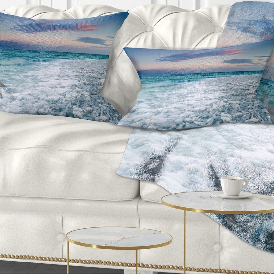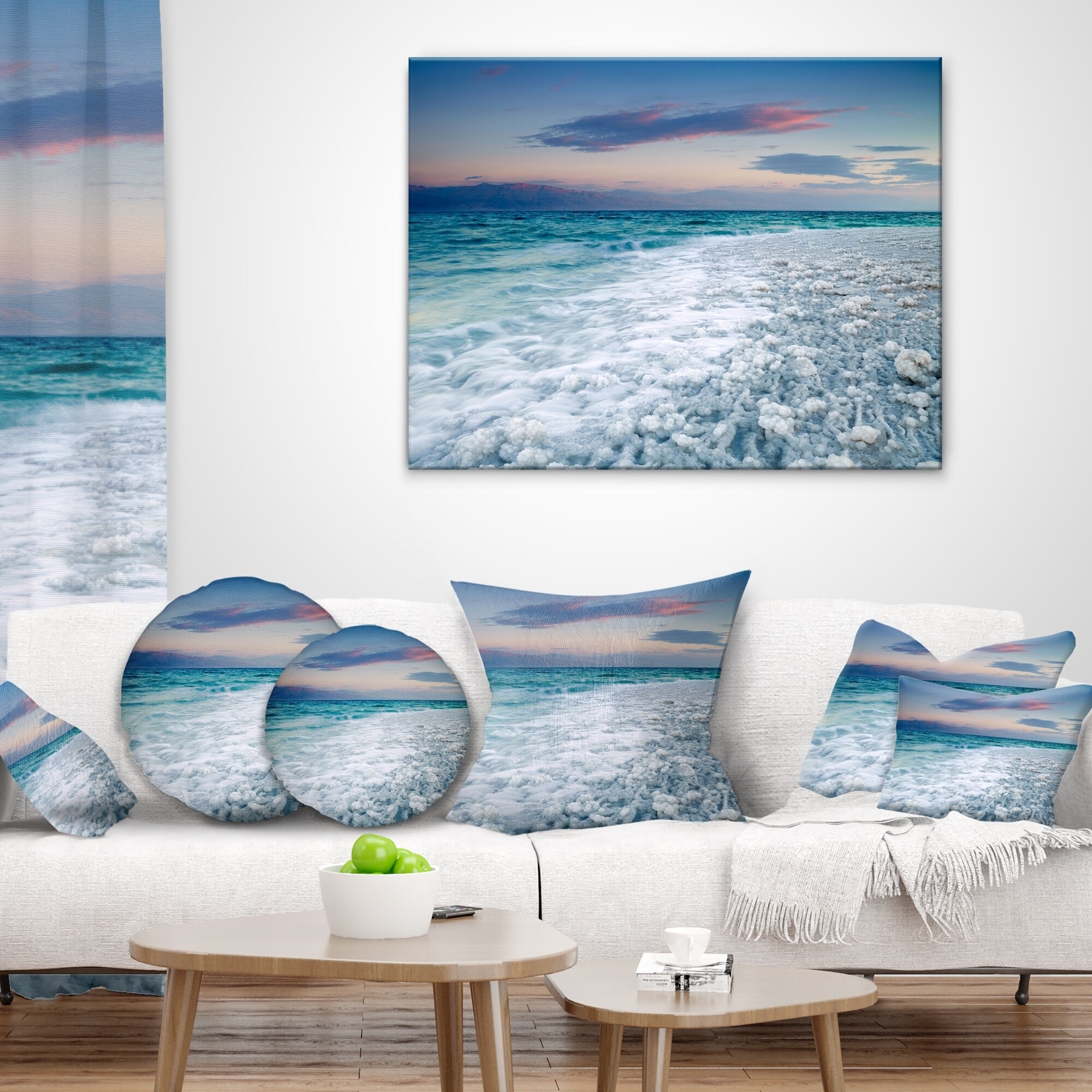 Decorative Throw Pillows for Couch Bed Sofa with Zip CoversAn easy, fun way to add a pop of color or bring new life to any room in your home or office is with these beautiful Sea & Shore throw pillows. Dress up your bed, sofa or lounger with this decorative design art pillows. Perfect as Beach bedroom décor, lounge décor Coastal living room décor. It adds a fun accent to any room. Throw pillows really do work wonders: they can transform any room from uninviting discomfort to warm and welcoming. And they really do go almost anywhere - arrange a couple on the couch or sofa, place one in your overstuffed chair for extra coziness, toss a couple on the bed and prop yourself up for a great read.These Sea & Shore pillow is printed using High Color Density Italian inks to create a vibrantly Free Shipping Over $49.99* Details Designart 'Beautiful Sunrise at Dead Sea' Seashore Throw Pillow Product Description: Decorative Throw Pillows for Couch Bed Sofa with Zip Covers An easy, fun way to add a pop of color or bring new life to any room in your home or office is with these beautiful Sea & Shore throw pillows. Dress up your bed, sofa or lounger with this decorative design art pillows. Perfect as Beach bedroom décor, lounge décor Coastal living room décor. It adds a fun accent to any room. Throw pillows really do work wondersthey can transform any room from uninviting discomfort to warm and welcoming. And they really do go almost anywhere - arrange a couple on the couch or sofa, place one in your overstuffed chair for extra coziness, toss a couple on the bed and prop yourself up for a great read. These Sea & Shore pillow is printed using High Color Density Italian inks to create a vibrantly colored, sharp artwork. Features: Perfect accent to any furniture piece Basic shapes with a modern graphic design twist Printed on 100% light weight polyester Cushion filled with 100% polyester fill Wrinkle resistant fabric Zip Closure so you can remove the pillow from its' cover Down-like comfort - Odorless 100% Hypoallergenic Machine Wash Cold Separately, Gently Cycle Only, No bleach, hang to dry Print on Demand with High Density Italian Ink Available in Several sizes Attribute :Beach, Coastal, Tropical Subject Sea & Shore, Nautical, Landscapes