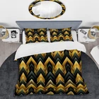 There is just nothing better than a beautiful, inviting comfortable bed after a long day. This Chevron bed set is created using the richest colors stemming from high density Italian ink and the softest fabrics making it the perfect way to spruce up your bedroom, while keeping it ultra-comfortable. This luxurious Black Gold Deco Glamour Chevron Pattern bed design is made with 100% microfiber polyester, making it ultra-soft to ensure you sleep comfortably all night long. This glam set includes 1 Bed Cover and 2 Shams and is available in twin, queen and king sizes.This Bedding Set is easily integrated into your already decorated space.What's Included? - Duvet Cover - Shams - Pillow Cases not included but can be buy separately - Comforter Insert NOT INCLUDEDFeatures - Free Shipping Over $49.99* Details Designart "Black Gold Deco Glamour Chevron Pattern" Gold glam bedding covert set Product Description: There is just nothing better than a beautiful, inviting comfortable bed after a long day. This Chevron bed set is created using the richest colors stemming from high density Italian ink and the softest fabrics making it the perfect way to spruce up your bedroom, while keeping it ultra-comfortable. This luxurious Black Gold Deco Glamour Chevron Pattern bed design is made with 100% microfiber polyester, making it ultra-soft to ensure you sleep comfortably all night long. This glam set includes 1 Bed Cover and 2 Shams and is available in twin, queen and king sizes. This Bedding Set is easily integrated into your already decorated space. What's Included? - Duvet Cover - Shams - Pillow Cases not included but can be buy separately - Comforter Insert NOT INCLUDED Features - Printed using High Density Italian Ink making the colors extra vibrant. - Made from ultra-soft, lightweight 100% microfiber polyester. Wrinkle resistant fabric. Down-like comfort, odorless. - The glam bed set includes one bed cover and two standard pillow shams to create a complete and stylish look. - The elegant and soft colors are both trendy and fun to brighten and update your bedroom. - Made in Canada - Decorative Wall Art and throw pillows to match this set are available but sold separately. - Actual comforter inserts and pillow inserts are not included. This set includes the two pillow shams and comforter cover only. King Dimensions: - 1 Duvet Cover104 inches wide x 88 inches long - 2 King Shams20 inches wide x 36 inches long Queen Dimensions: - 1 Duvet Cover88 inches wide x 88 inches long - 2 Standard Shams16 inches wide x 26 inches long Twin Dimensions: - 1 Duvet Cover68 inches wide x 88 inches long - 1 Standard Sham16 inches wide x 26 inches long Product Details - MaterialPolyester. - PatternChevron - ColorBlack; Gold - Styleglam - ReversibleNo Directions: Fabric Care InstructionsMachine wash on cold gentle cycle. Wash separately on first wash. Use only non- chlorine bleach when needed. Tumble dry low. Remove promptly.