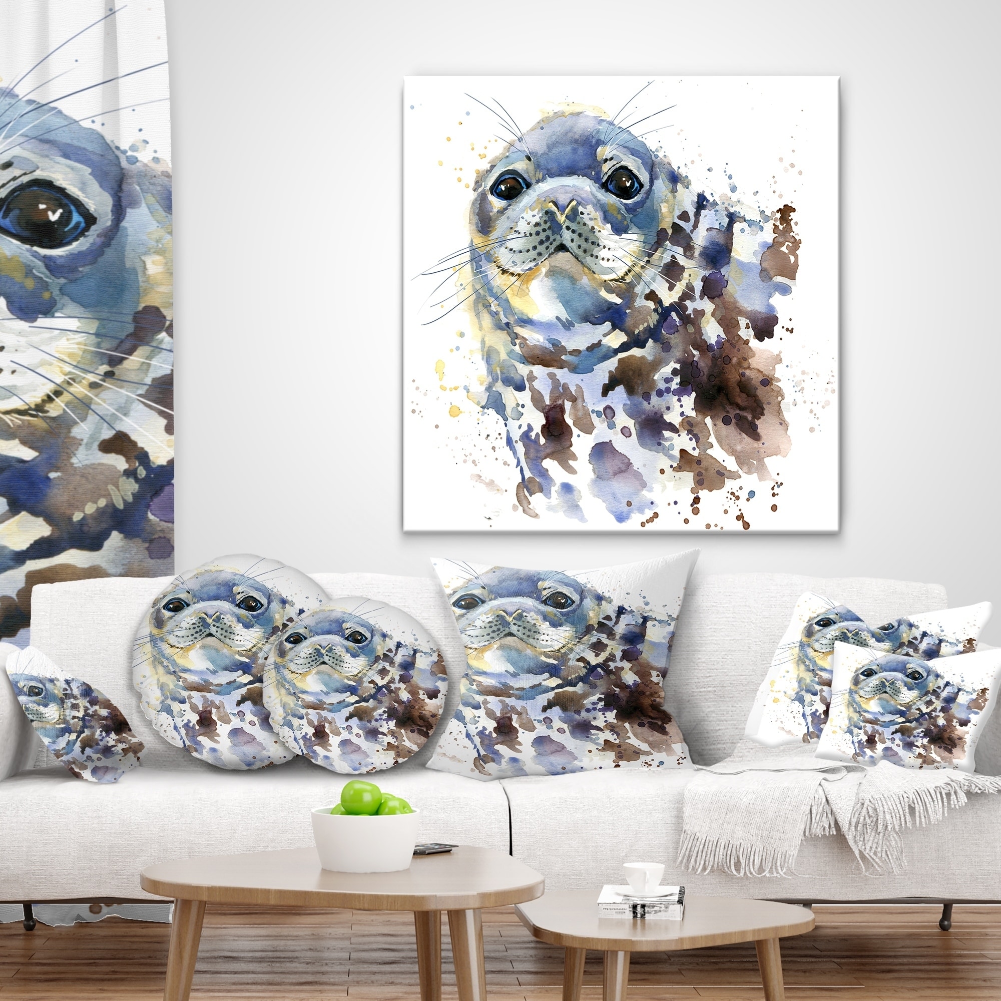 Designart 'Blue Marine Seal Watercolor' Contemporary Animal