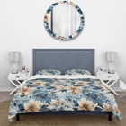 There is just nothing better than a beautiful, inviting comfortable bed after a long day. This Floral bed set is created using the richest colors stemming from high density Italian ink and the softest fabrics making it the perfect way to spruce up your bedroom, while keeping it ultra-comfortable. This luxurious Blue Retro Finesse Floral Pattern V bed design is made with 100% microfiber polyester, making it ultra-soft to ensure you sleep comfortably all night long. This Cottage set includes 1 Bed Cover and 2 Shams and is available in twin, queen and king sizes.This Bedding Set is easily integrated into your already decorated space.What's Included? - Duvet Cover - Shams - Pillow Cases not included but can be buy separately - Comforter Insert NOT INCLUDEDFeatures - Printed Free Shipping Over $49.99* Details Designart "Blue Retro Finesse Floral Pattern V" Cottage Bedding Set With Shams Product Description: There is just nothing better than a beautiful, inviting comfortable bed after a long day. This Floral bed set is created using the richest colors stemming from high density Italian ink and the softest fabrics making it the perfect way to spruce up your bedroom, while keeping it ultra-comfortable. This luxurious Blue Retro Finesse Floral Pattern V bed design is made with 100% microfiber polyester, making it ultra-soft to ensure you sleep comfortably all night long. This Cottage set includes 1 Bed Cover and 2 Shams and is available in twin, queen and king sizes. This Bedding Set is easily integrated into your already decorated space. What's Included? - Duvet Cover - Shams - Pillow Cases not included but can be buy separately - Comforter Insert NOT INCLUDED Features - Printed using High Density Italian Ink making the colors extra vibrant. - Made from ultra-soft, lightweight 100% microfiber polyester. Wrinkle resistant fabric. Down-like comfort, odorless. - The Cottage bed set includes one bed cover and two standard pillow shams to create a complete and stylish look. - The elegant and soft colors are both trendy and fun to brighten and update your bedroom. - Made in Canada - Decorative Wall Art and throw pillows to match this set are available but sold separately. - Actual comforter inserts and pillow inserts are not included. This set includes the two pillow shams and comforter cover only. King Dimensions: - 1 Duvet Cover104 inches wide x 88 inches long - 2 King Shams20 inches wide x 36 inches long Queen Dimensions: - 1 Duvet Cover88 inches wide x 88 inches long - 2 Standard Shams16 inches wide x 26 inches long Twin Dimensions: - 1 Duvet Cover68 inches wide x 88 inches long - 1 Standard Sham16 inches wide x 26 inches long Product Details - MaterialPolyester. - PatternFloral - ColorBlue - StyleCottage; traditional - ReversibleNo Directions: Fabric Care InstructionsMachine wash on cold gentle cycle. Wash separately on first wash. Use only non- chlorine bleach when needed. Tumble dry low. Remove promptly.