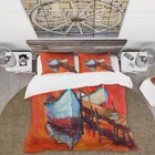 There is just nothing better than a beautiful, inviting comfortable bed after a long day. This Graphic Print bed set is created using the richest colors stemming from high density Italian ink and the softest fabrics, making it the perfect way to spruce up your bedroom while keeping it ultra-comfortable. This luxurious Transportation bed design is made with 100% microfiber polyester, making it ultra-soft to ensure you sleep comfortably all night long. This Nautical & Coastal set includes 1 Bed Cover and 2 Shams and is available in twin, queen and king sizes. This Nautical & Coastal Duvet Cover Set Bedding Set is easily integrated into your already decorated space.Features:Printed using High Density Italian Ink making the colors extra vibrantMade from ultra-soft, lightweight 100% microfiber Free Shipping Over $49.99* Details Designart 'Boats Resting On The Water Near Coastal Town IV' Nautical & Coastal Product Description: There is just nothing better than a beautiful, inviting comfortable bed after a long day. This Graphic Print bed set is created using the richest colors stemming from high density Italian ink and the softest fabrics, making it the perfect way to spruce up your bedroom while keeping it ultra-comfortable. This luxurious Transportation bed design is made with 100% microfiber polyester, making it ultra-soft to ensure you sleep comfortably all night long. This Nautical & Coastal set includes 1 Bed Cover and 2 Shams and is available in twin, queen and king sizes. This Nautical & Coastal Duvet Cover Set Bedding Set is easily integrated into your already decorated space. Features: Printed using High Density Italian Ink making the colors extra vibrant Made from ultra-soft, lightweight 100% microfiber polyester Wrinkle resistant fabric. Down-like comfort, odorless The Lake House bed set includes one bed cover and two standard pillow shams Creates a complete and stylish look in your room The elegant and soft colors are both trendy and fun to brighten and update your bedroom Made in Canada Decorative Wall Art and throw pillows to match this set are available but sold separately Actual comforter inserts and pillow inserts are not included This set includes the two pillow shams and comforter cover only. Made from polyester Nautical & Coastal Duvet Cover Set Color is Orange Nautical & Coastal, Transportation style Non-reversible Set Includes: Duvet Cover Shams Pillow Cases not included but can be buy separately Comforter Insert NOT INCLUDED Twin Dimensions: 1 Duvet Cover68 inches wide x 88 inches long 1 Standard Sham16 inches wide x 26 inches long Queen Dimensions: 1 Duvet Cover88 inches wide x 88 inches long 2 Standard Shams16 inches wide x 26 inches long King Dimensions: 1 Duvet Cover104 inches wide x 88 inches long 2 King Shams20 inches wide x 36 inches long Fabric Care Instructions: Machine wash on cold gentle cycle. Wash separately on first wash. Use only non- chlorine bleach when needed. Tumble dry low. Remove promptly.