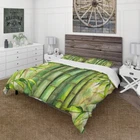There is just nothing better than a beautiful, inviting comfortable bed after a long day. This Floral bed set is created using the richest colors stemming from high density Italian ink and the softest fabrics, making it the perfect way to spruce up your bedroom while keeping it ultra-comfortable. This luxurious Floral bed design is made with 100% microfiber polyester, making it ultra-soft to ensure you sleep comfortably all night long. This Transitional set includes 1 Bed Cover and 2 Shams and is available in twin, queen and king sizes. This Transitional Duvet Cover Set Bedding Set is easily integrated into your already decorated space.Features:Printed using High Density Italian Ink making the colors extra vibrantMade from ultra-soft, lightweight 100% microfiber polyesterWrinkle resistant Free Shipping Over $49.99* Details Designart 'Bright Green Bamboo Stems' Transitional Duvet Cover Set Product Description: There is just nothing better than a beautiful, inviting comfortable bed after a long day. This Floral bed set is created using the richest colors stemming from high density Italian ink and the softest fabrics, making it the perfect way to spruce up your bedroom while keeping it ultra-comfortable. This luxurious Floral bed design is made with 100% microfiber polyester, making it ultra-soft to ensure you sleep comfortably all night long. This Transitional set includes 1 Bed Cover and 2 Shams and is available in twin, queen and king sizes. This Transitional Duvet Cover Set Bedding Set is easily integrated into your already decorated space. Features: Printed using High Density Italian Ink making the colors extra vibrant Made from ultra-soft, lightweight 100% microfiber polyester Wrinkle resistant fabric. Down-like comfort, odorless The Tropical bed set includes one bed cover and two standard pillow shams Creates a complete and stylish look in your room The elegant and soft colors are both trendy and fun to brighten and update your bedroom Made in Canada Decorative Wall Art and throw pillows to match this set are available but sold separately Actual comforter inserts and pillow inserts are not included This set includes the two pillow shams and comforter cover only. Made from polyester Transitional Duvet Cover Set Color is Green Transitional, Floral style Non-reversible Set Includes: Duvet Cover Shams Pillow Cases not included but can be buy separately Comforter Insert NOT INCLUDED Twin Dimensions: 1 Duvet Cover68 inches wide x 88 inches long 1 Standard Sham16 inches wide x 26 inches long Queen Dimensions: 1 Duvet Cover88 inches wide x 88 inches long 2 Standard Shams16 inches wide x 26 inches long King Dimensions: 1 Duvet Cover104 inches wide x 88 inches long 2 King Shams20 inches wide x 36 inches long Fabric Care Instructions: Machine wash on cold gentle cycle. Wash separately on first wash. Use only non- chlorine bleach when needed. Tumble dry low. Remove promptly.
