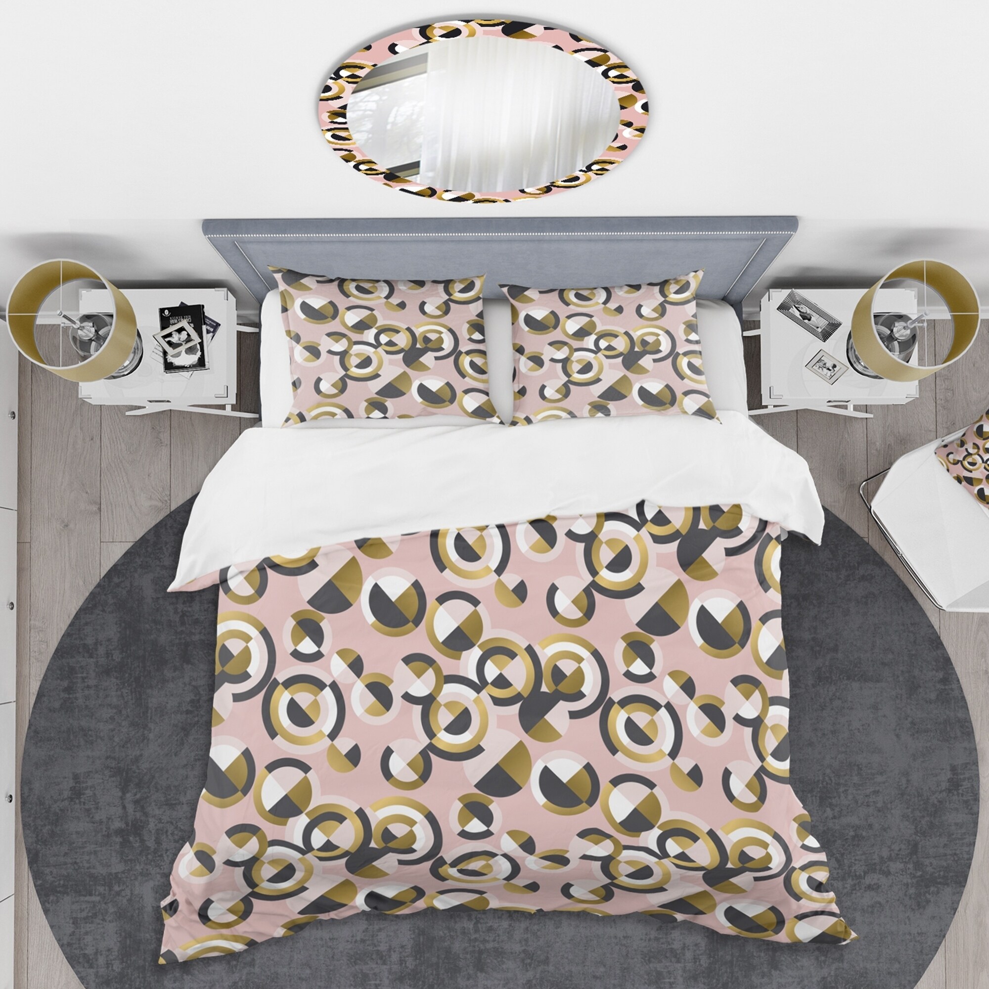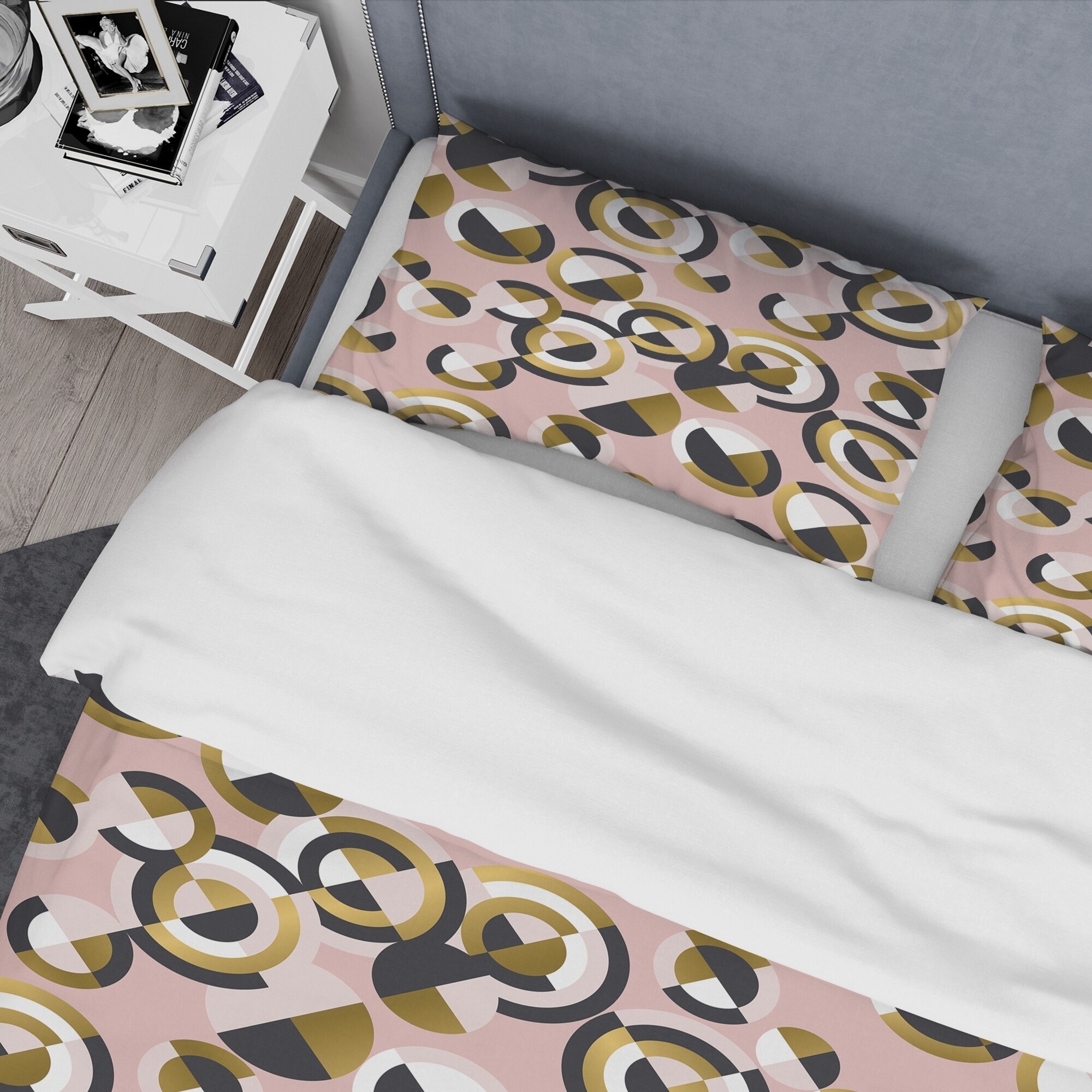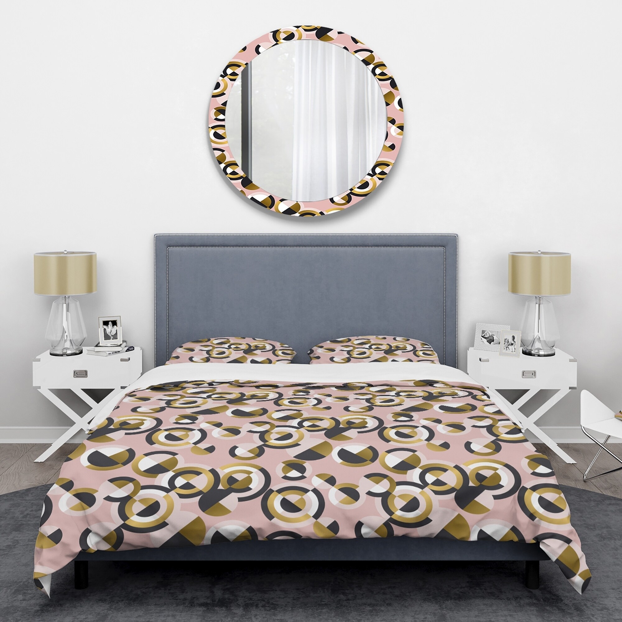 Indulge in a luxurious bedding experience with the Designart 'Circular geometric shapes retro pattern' Mid-Century Duvet Cover Set. Made with 100% microfiber polyester and printed using high density Italian ink, this abstract bed design boasts rich colors that are both vibrant and elegant. The set includes one bed cover and two shams, making it easy to create a complete and stylish look in your bedroom. Wrinkle-resistant and odorless, this bedding set is ultra-soft and lightweight, ensuring a comfortable sleep all night long. Available in king, queen, and twin sizes, this geometric bedding set is the perfect addition to any already decorated space.Features: High density Italian ink for extra vibrant colors Ultra-soft and lightweight 100% microfiber polyester Includes one bed cover and Free Shipping Over $49.99* Details Designart 'Circular geometric shapes retro pattern' Mid-Century Duvet Cover Set Product Description: Indulge in a luxurious bedding experience with the Designart 'Circular geometric shapes retro pattern' Mid-Century Duvet Cover Set. Made with 100% microfiber polyester and printed using high density Italian ink, this abstract bed design boasts rich colors that are both vibrant and elegant. The set includes one bed cover and two shams, making it easy to create a complete and stylish look in your bedroom. Wrinkle-resistant and odorless, this bedding set is ultra-soft and lightweight, ensuring a comfortable sleep all night long. Available in king, queen, and twin sizes, this geometric bedding set is the perfect addition to any already decorated space. Features: High density Italian ink for extra vibrant colors Ultra-soft and lightweight 100% microfiber polyester Includes one bed cover and two standard pillow shams Elegant and soft colors that are both trendy and fun Made in Canada Comforter and pillow inserts not included Decorative wall art and throw pillows available but sold separately King: 1 Duvet Cover104 inches wide x 88 inches long 2 King Shams20 inches wide x 36 inches long Queen: 1 Duvet Cover88 inches wide x 88 inches long 2 Standard Shams16 inches wide x 26 inches long Twin: 1 Duvet Cover68 inches wide x 88 inches long 1 Standard Sham16 inches wide x 26 inches long Product Details: MaterialPolyester PatternGeometric ColorBrown StyleGlam Abstract, Mid-Century Modern, Abstract ReversibleNo Care Instructions: Machine wash on cold gentle cycle. Wash separately on first wash. Use only non-chlorine bleach when needed. Tumble dry low. Remove promptly.
