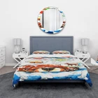 There is just nothing better than a beautiful, inviting comfortable bed after a long day. This Animal Print bed set is created using the richest colors stemming from high density Italian ink and the softest fabrics, making it the perfect way to spruce up your bedroom while keeping it ultra-comfortable. This luxurious Animals bed design is made with 100% microfiber polyester, making it ultra-soft to ensure you sleep comfortably all night long. This Children's Art set includes 1 Bed Cover and 2 Shams and is available in twin, queen and king sizes. This Children's Art Duvet Cover Set Bedding Set is easily integrated into your already decorated space.Features:Printed using High Density Italian Ink making the colors extra vibrantMade from ultra-soft, lightweight 100% microfiber polyesterWrinkle Free Shipping Over $49.99* Details Designart 'Dog Dreams' Children's Art Duvet Cover Set Product Description: There is just nothing better than a beautiful, inviting comfortable bed after a long day. This Animal Print bed set is created using the richest colors stemming from high density Italian ink and the softest fabrics, making it the perfect way to spruce up your bedroom while keeping it ultra-comfortable. This luxurious Animals bed design is made with 100% microfiber polyester, making it ultra-soft to ensure you sleep comfortably all night long. This Children's Art set includes 1 Bed Cover and 2 Shams and is available in twin, queen and king sizes. This Children's Art Duvet Cover Set Bedding Set is easily integrated into your already decorated space. Features: Printed using High Density Italian Ink making the colors extra vibrant Made from ultra-soft, lightweight 100% microfiber polyester Wrinkle resistant fabric. Down-like comfort, odorless The bed set includes one bed cover and two standard pillow shams Creates a complete and stylish look in your room The elegant and soft colors are both trendy and fun to brighten and update your bedroom Made in Canada Decorative Wall Art and throw pillows to match this set are available but sold separately Actual comforter inserts and pillow inserts are not included This set includes the two pillow shams and comforter cover only. Made from polyester Children's Art Duvet Cover Set Color is Brown Children's Art, Animals style Non-reversible Set Includes: Duvet Cover Shams Pillow Cases not included but can be buy separately Comforter Insert NOT INCLUDED Twin Dimensions: 1 Duvet Cover68 inches wide x 88 inches long 1 Standard Sham16 inches wide x 26 inches long Queen Dimensions: 1 Duvet Cover88 inches wide x 88 inches long 2 Standard Shams16 inches wide x 26 inches long King Dimensions: 1 Duvet Cover104 inches wide x 88 inches long 2 King Shams20 inches wide x 36 inches long Fabric Care Instructions: Machine wash on cold gentle cycle. Wash separately on first wash. Use only non- chlorine bleach when needed. Tumble dry low. Remove promptly.