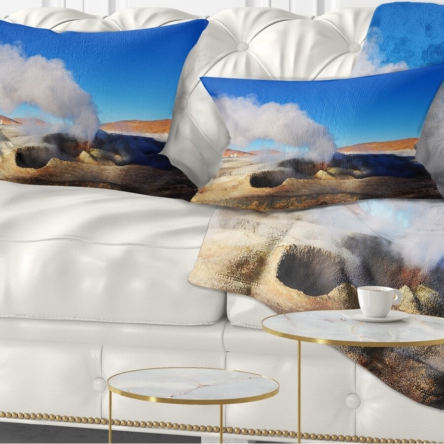 Decorative Throw Pillows for Couch Bed Sofa with Zip CoversAn easy, fun way to add a pop of color or bring new life to any room in your home or office is with these beautiful Landscape throw pillows. Dress up your bed, sofa or lounger with this decorative design art pillows. Perfect as Farmhouse bedroom décor, lounge décor Traditional living room décor. It adds a fun accent to any room. Throw pillows really do work wonders: they can transform any room from uninviting discomfort to warm and welcoming. And they really do go almost anywhere - arrange a couple on the couch or sofa, place one in your overstuffed chair for extra coziness, toss a couple on the bed and prop yourself up for a great read.These Landscapes pillow is printed using High Color Density Italian inks to create a vibrantly Free Shipping Over $49.99* Details Designart 'Geyser Sol De Manana Bolivia' Landscape Printed Throw Pillow Product Description: Decorative Throw Pillows for Couch Bed Sofa with Zip Covers An easy, fun way to add a pop of color or bring new life to any room in your home or office is with these beautiful Landscape throw pillows. Dress up your bed, sofa or lounger with this decorative design art pillows. Perfect as Farmhouse bedroom décor, lounge décor Traditional living room décor. It adds a fun accent to any room. Throw pillows really do work wondersthey can transform any room from uninviting discomfort to warm and welcoming. And they really do go almost anywhere - arrange a couple on the couch or sofa, place one in your overstuffed chair for extra coziness, toss a couple on the bed and prop yourself up for a great read. These Landscapes pillow is printed using High Color Density Italian inks to create a vibrantly colored, sharp artwork. Features: Perfect accent to any furniture piece Basic shapes with a modern graphic design twist Printed on 100% light weight polyester Cushion filled with 100% polyester fill Wrinkle resistant fabric Zip Closure so you can remove the pillow from its' cover Down-like comfort - Odorless 100% Hypoallergenic Machine Wash Cold Separately, Gently Cycle Only, No bleach, hang to dry Print on Demand with High Density Italian Ink Available in Several sizes Attribute :Farmhouse, Traditional, Fine Art Giclee Subject Landscapes, Country Charrm, photography