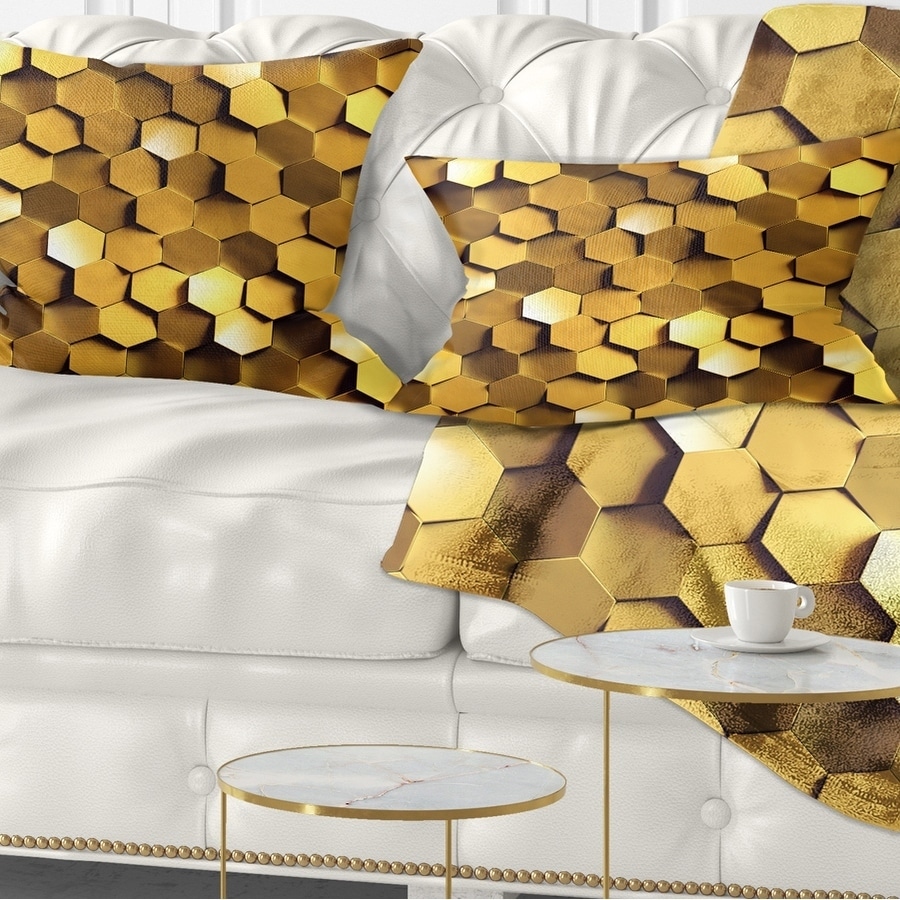 Decorative Throw Pillows for Couch Bed Sofa with Zip CoversAn easy, fun way to add a pop of color or bring new life to any room in your home or office is with these beautiful Abstract throw pillows. Dress up your bed, sofa or lounger with this decorative design art pillows. Perfect as Contemporary bedroom décor, lounge décor Modern living room décor. It adds a fun accent to any room. Throw pillows really do work wonders: they can transform any room from uninviting discomfort to warm and welcoming. And they really do go almost anywhere - arrange a couple on the couch or sofa, place one in your overstuffed chair for extra coziness, toss a couple on the bed and prop yourself up for a great read.These Abstract pillow is printed using High Color Density Italian inks to create a vibrantly Free Shipping Over $49.99* Details Designart 'Golden Honeycomb Wall Texture' Abstract Throw Pillow Product Description: Decorative Throw Pillows for Couch Bed Sofa with Zip Covers An easy, fun way to add a pop of color or bring new life to any room in your home or office is with these beautiful Abstract throw pillows. Dress up your bed, sofa or lounger with this decorative design art pillows. Perfect as Contemporary bedroom décor, lounge décor Modern living room décor. It adds a fun accent to any room. Throw pillows really do work wondersthey can transform any room from uninviting discomfort to warm and welcoming. And they really do go almost anywhere - arrange a couple on the couch or sofa, place one in your overstuffed chair for extra coziness, toss a couple on the bed and prop yourself up for a great read. These Abstract pillow is printed using High Color Density Italian inks to create a vibrantly colored, sharp artwork. Features: Perfect accent to any furniture piece Basic shapes with a modern graphic design twist Printed on 100% light weight polyester Cushion filled with 100% polyester fill Wrinkle resistant fabric Zip Closure so you can remove the pillow from its' cover Down-like comfort - Odorless 100% Hypoallergenic Machine Wash Cold Separately, Gently Cycle Only, No bleach, hang to dry Print on Demand with High Density Italian Ink Available in Several sizes Attribute :Contemporary, Modern, Transitional Subject Abstract, Impressionism, Geometric